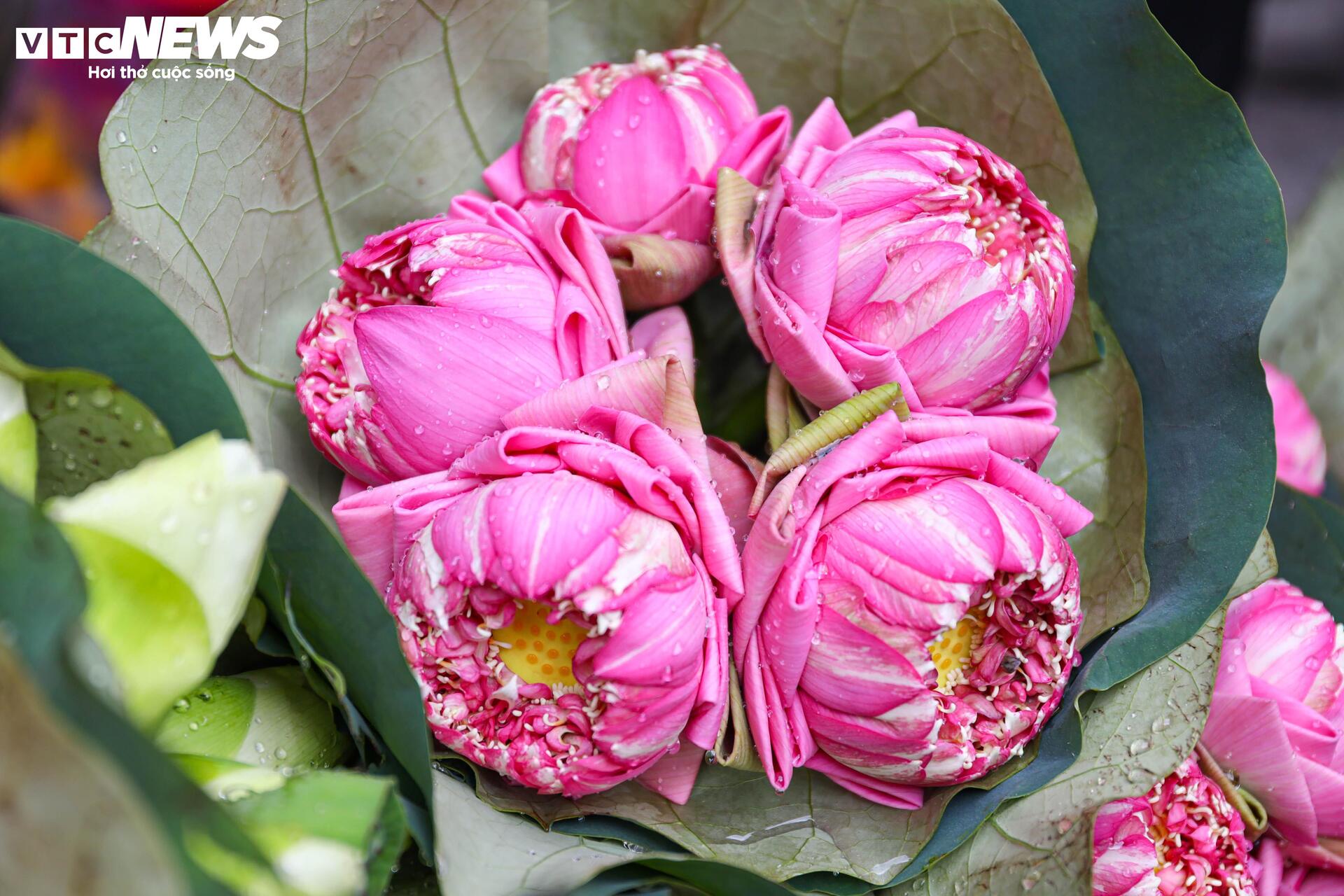 Giá hoa tươi sáng nay tăng nhẹ so với ngày thường, trong đó hoa sen quan âm giá 60.000 đồng/bó, sen bách diệp là 150.000 đồng/bó (tăng 30.000 đồng/bó so), hoa loa kèn 40.000 - 50.000 đồng/chục.