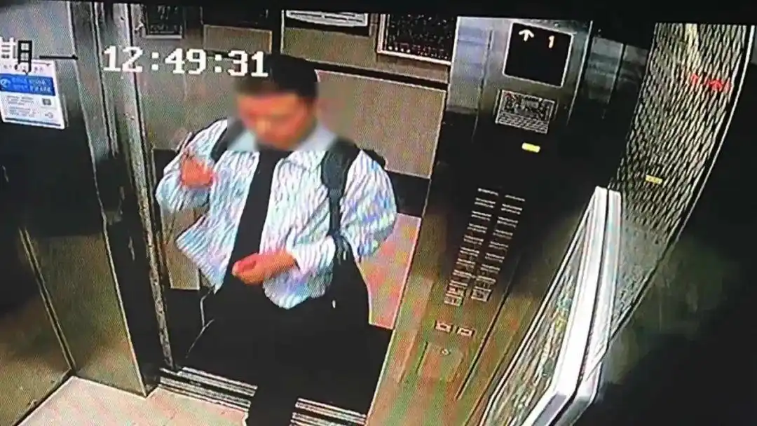 Hình ảnh “nhân viên giám định” được camera ghi lại trong thang máy nhà anh Trương