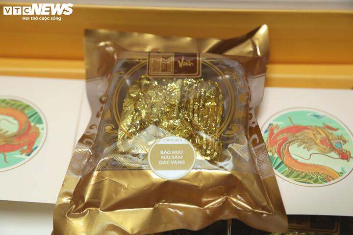Vàng lá mỏng, vốn thường thấy trong nghệ thuật chế tác hoặc ẩm thực cao cấp, nay được khéo léo đặt lên chiếc bánh trung thu truyền thống. Anh Ngô Thế Hoàng cho biết các lá vàng 24K đều được nhập khẩu 100% từ Đức, với mức giá khoảng 3,3 triệu đồng/25 lá, đảm bảo an toàn thực phẩm và không gây hại cho sức khỏe của khách hàng. Nhân bánh trung thu dát vàng gồm 6 loại bao gồm tổ yến, vi cá, bào ngư hải sản, đông trùng hạ thảo,...