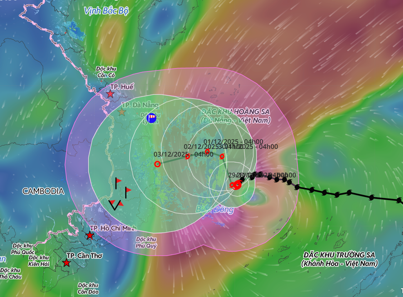 Bão số 15 diễn biến rất khó lường. Nguồn: Hệ thống giám sát thiên tai Việt Nam.