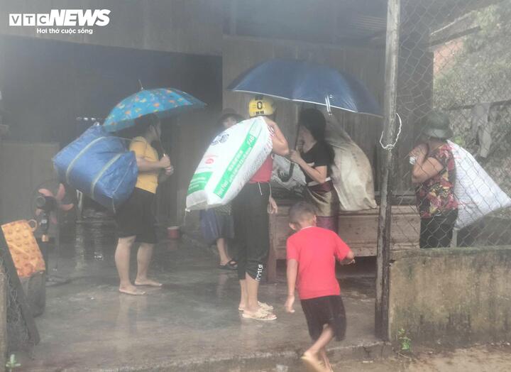 Người dân bản Cù Bài (xã Hướng Lập) di tản khỏi vùng có nguy cơ sạt lở trong mưa để đến nơi an toàn. (Ảnh: Trần Minh Hạnh)