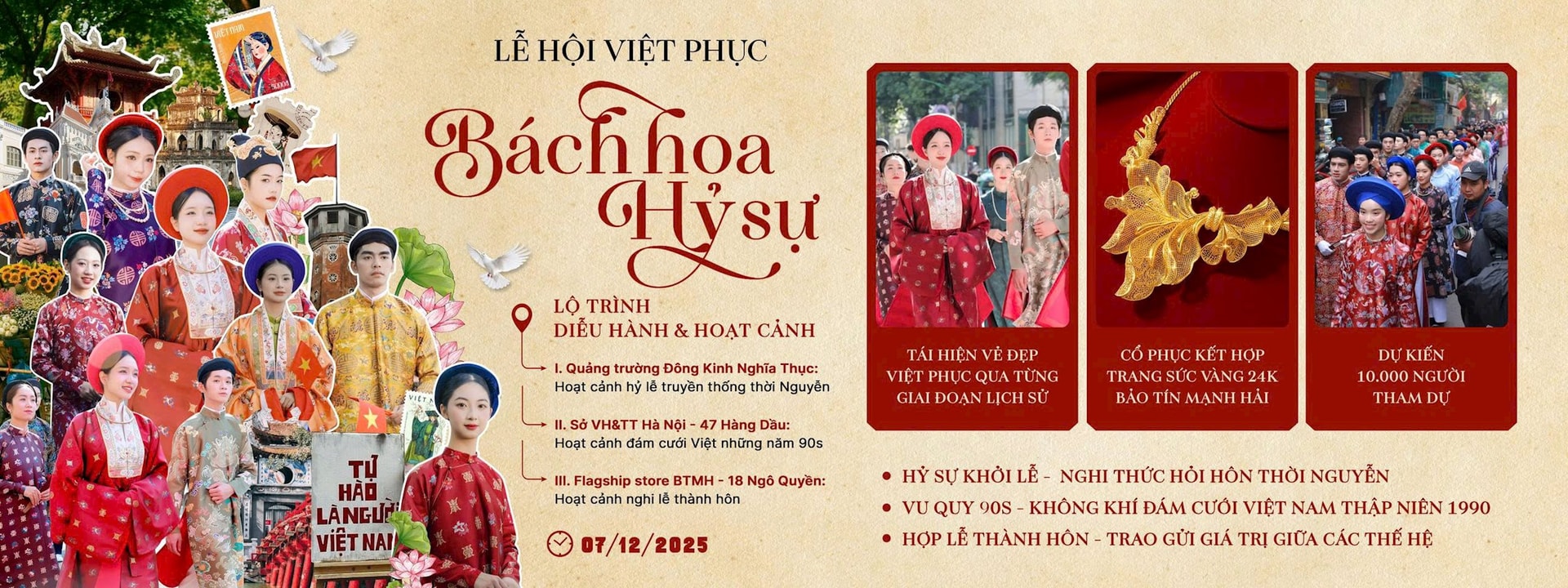 Trong khuôn khổ sự kiện, thương hiệu còn tổ chức Lễ hội Việt Phục “Bách Hoa Hỷ Sự”, tái hiện đám cưới, nghi lễ truyền thống, với lộ trình từ Quảng trường Đông Kinh Nghĩa Thục → Sở VH&TT Hà Nội → Hàng Khay → Flagship 18 Ngô Quyền, nhằm lan tỏa nét đẹp văn hoá Hà Nội xưa tới công chúng hiện đại. Mỗi hoạt cảnh được thiết kế để tái hiện trọn vẹn những khoảnh khắc thiêng liêng của ngày hỷ sự – từ bước chân của đoàn rước đến hình ảnh những bộ Việt phục rực rỡ giữa phố phường, như lát cắt sống động của quá khứ trở về hiện tại.