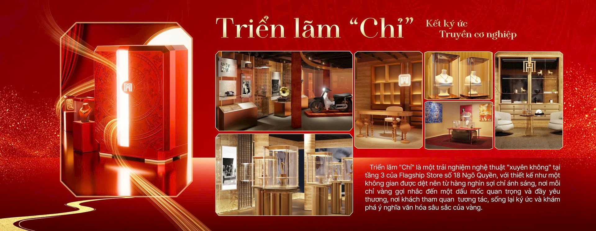Tâm điểm của buổi lễ khai trương là nghi thức khai mở “Trân Bảo Vượt Thời Gian”. Đây không chỉ đơn thuần một cửa hàng vàng bình thường, mà được định vị như “Không gian nghệ thuật & văn hóa kim hoàn”. Trên nền kiến trúc giao hòa giữa nét thanh lịch Hà Nội xưa và sự sang trọng hiện đại, nhiều tuyệt tác vàng 24K chế tác thủ công được trưng bày, khơi gợi câu chuyện về nghề, gia đình và truyền thống.