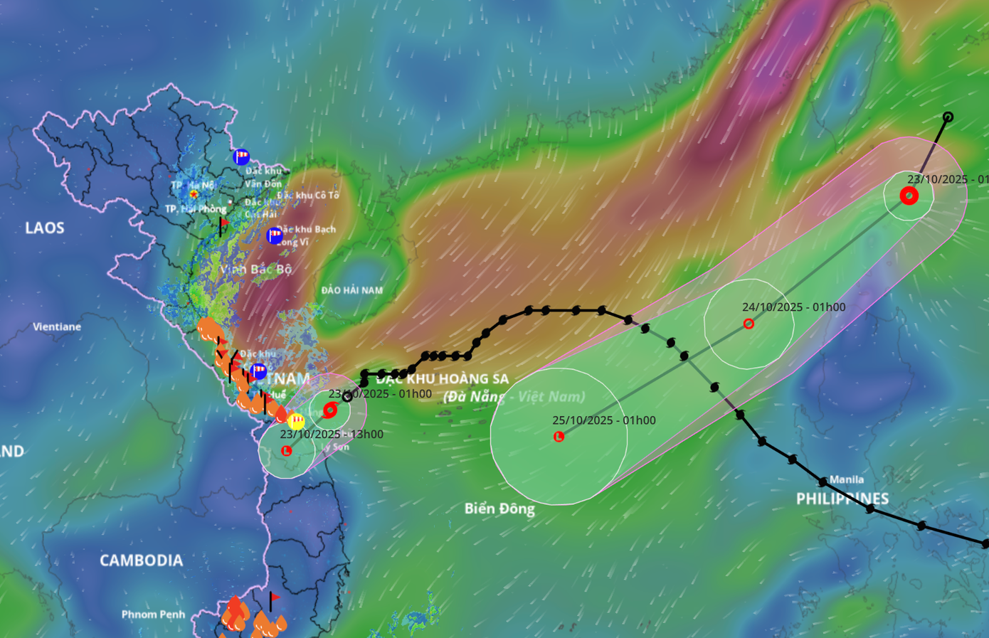 Dự báo từ sáng sớm 23/10 đến đêm 24/10, khu vực từ Nam Quảng Trị đến Đà Nẵng tiếp tục có mưa to đến rất to với lượng mưa phổ biến 200-400mm, có nơi trên 700mm. Khu vực từ Hà Tĩnh, Bắc Quảng Trị và Quảng Ngãi có mưa to và dông với lượng mưa phổ biến 100-200mm, có nơi mưa rất to trên 300mm.