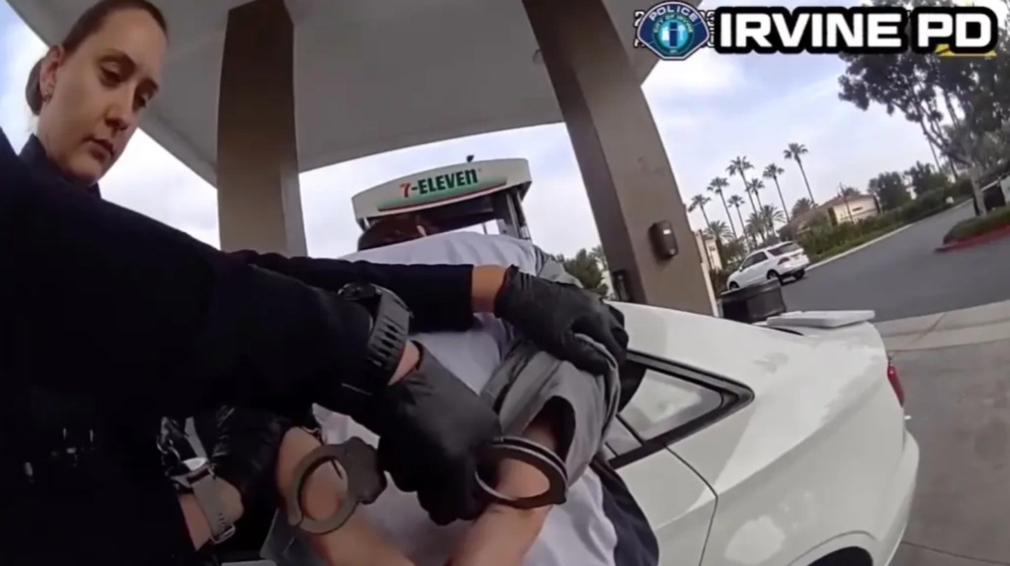 Sở Cảnh sát Irvine, quận Cam, bang California, mới đây công bố video trích xuất từ camera gắn trên người, ghi lại vụ bắt tài xế tại một trạm xăng trong thành phố hồi tuần trước.