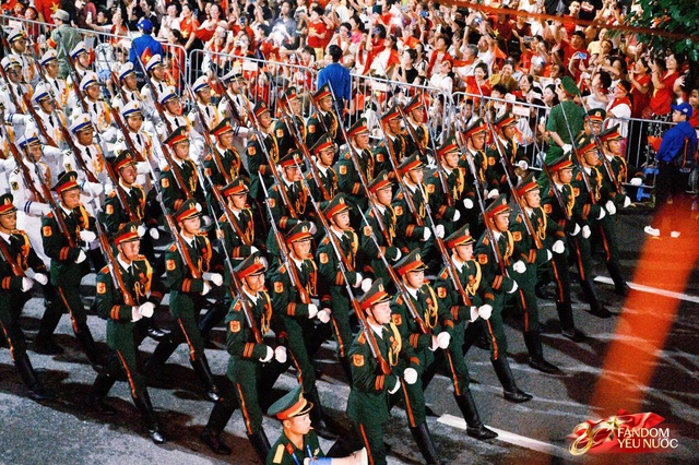 Sau phần nghi thức rước đuốc thắp sáng đài lửa, Thượng tướng Nguyễn Văn Nghĩa, Phó Tổng tham mưu trưởng Quân đội nhân dân Việt Nam chỉ huy phần diễu binh, diễu hành Kỷ niệm 80 năm Cách mạng Tháng 8 thành công và Quốc khánh 2-9 và tuyên bố "Cuộc diễu binh, diễu hành bắt đầu!".
