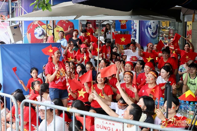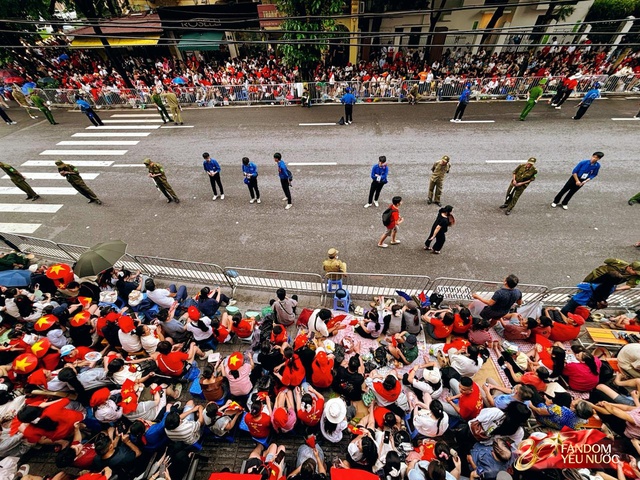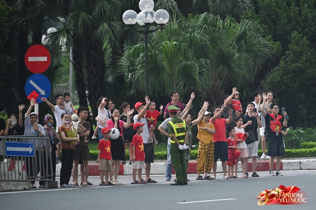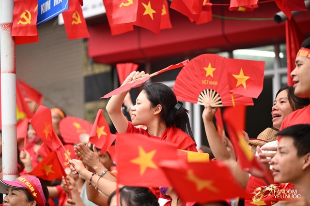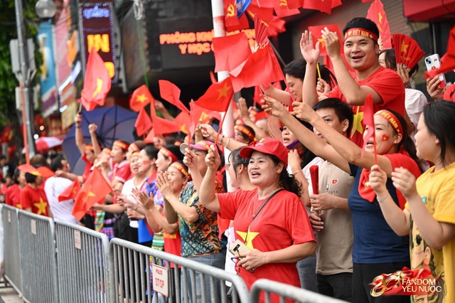 Trên đường Kim Mã, đám đông nối dài, tay cầm cờ, tay vẫy quạt, tạo nên một bức tranh sống động giữa trung tâm Thủ đô. Những khoảnh khắc ấy, tất cả cùng nhau reo hò, hô vang "Việt Nam Muôn Năm".