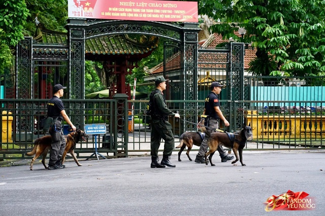Những chú cảnh khuyển nghiêm trang, phối hợp cùng lực lượng chức năng để đảm bảo an toàn tuyệt đối cho buổi sơ duyệt A80. Ảnh: Viết Thanh