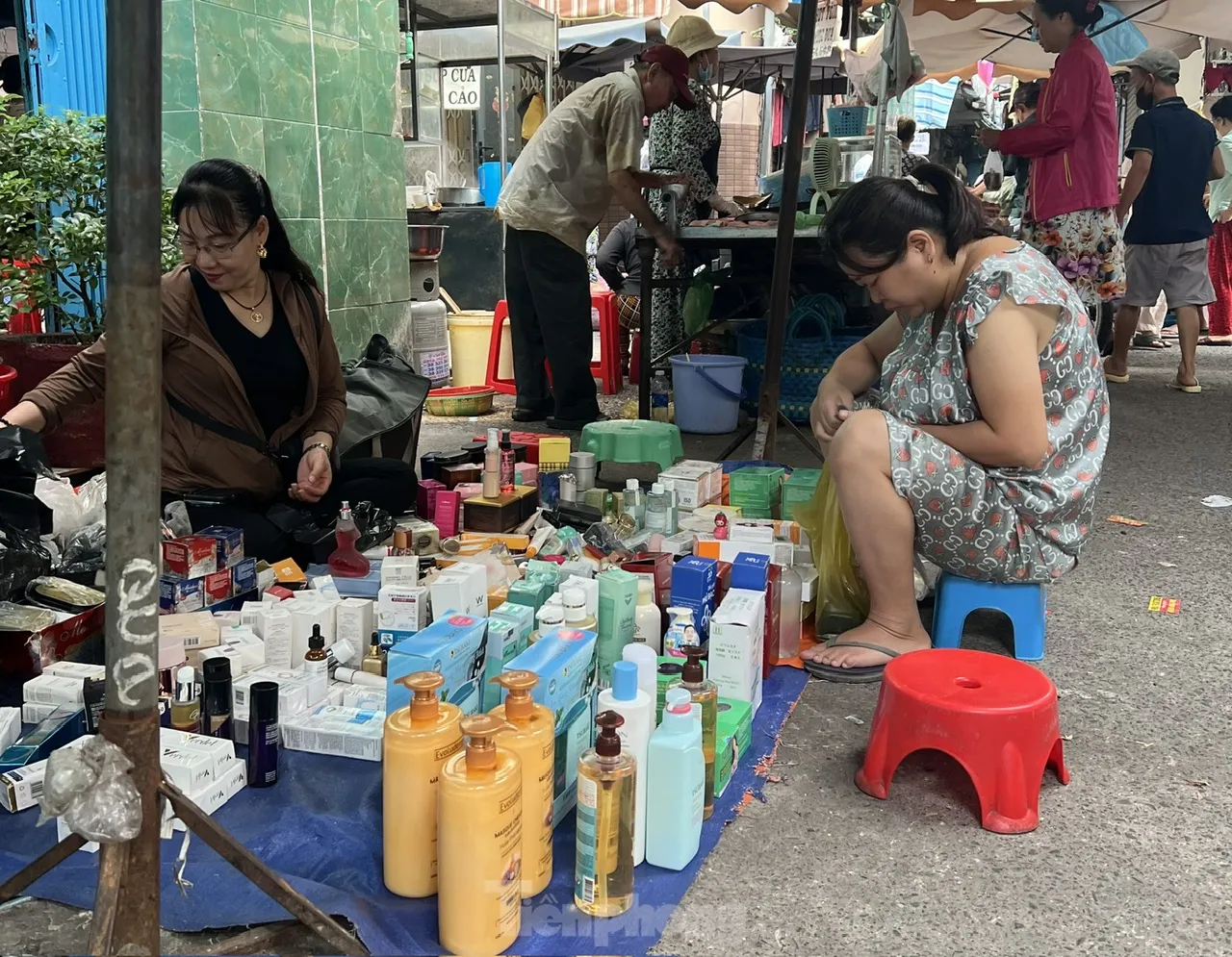 Tại chợ Bàn Cờ (phường Bàn Cờ) có gần chục quầy mỹ phẩm được trải sơ sài trên bạt nhựa ngay trong lòng chợ. Hầu như “sạp mỹ phẩm” nào cũng có khách. Chị em ngồi xung quanh trên chiếc ghế nhựa nhỏ, thử từng sản phẩm, thấy thích cái nào thì mua, không ưng trả lại. “Tôi chọn được mấy hũ kem dưỡng da xịn lắm, mua mà không cần hỏi giá vì loại nào cũng tầm vài chục ngàn đồng. Mua nhiều còn được giảm giá” – một khách hàng nữ vui vẻ khoe.