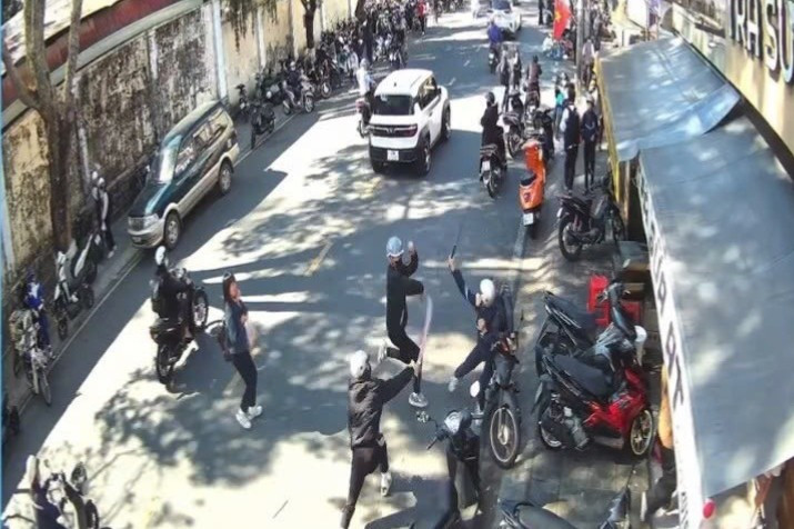 Khi phát hiện D. đang đi bộ, L. và V. lao sang đường tấn công. Bị vây đánh, D. rút từ trong cặp ra một cây gậy ba khúc bằng kim loại để chống trả. Khi di chuyển đến trước một quán trà sữa gần đó, L. tiếp tục dùng mã tấu chém nhiều nhát về phía D.