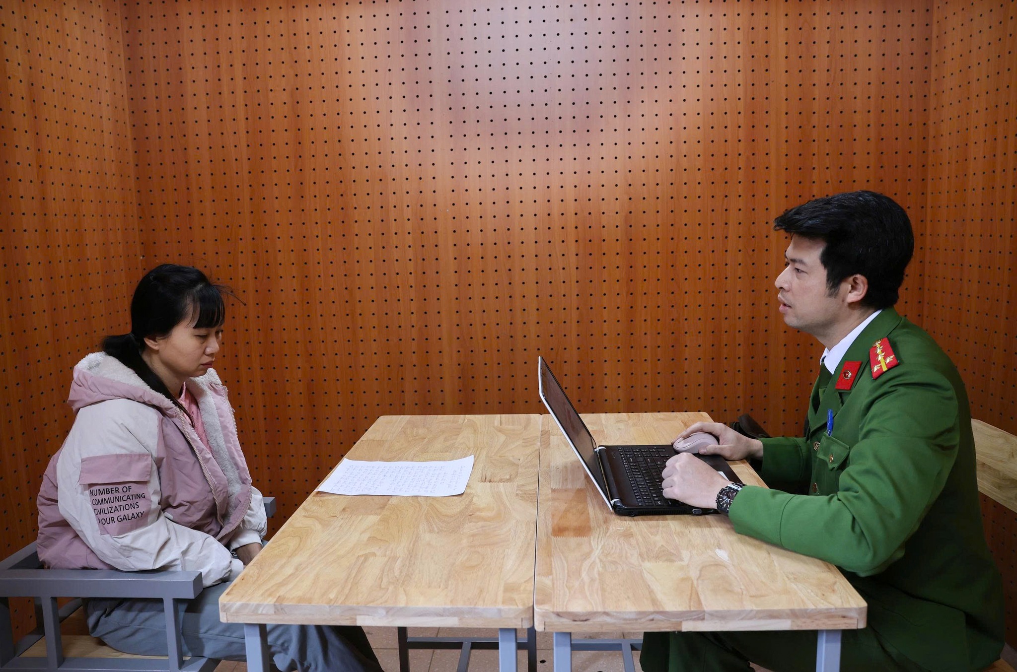 Nguyễn Thị Nga tại cơ quan công an. Ảnh: Công an cung cấp