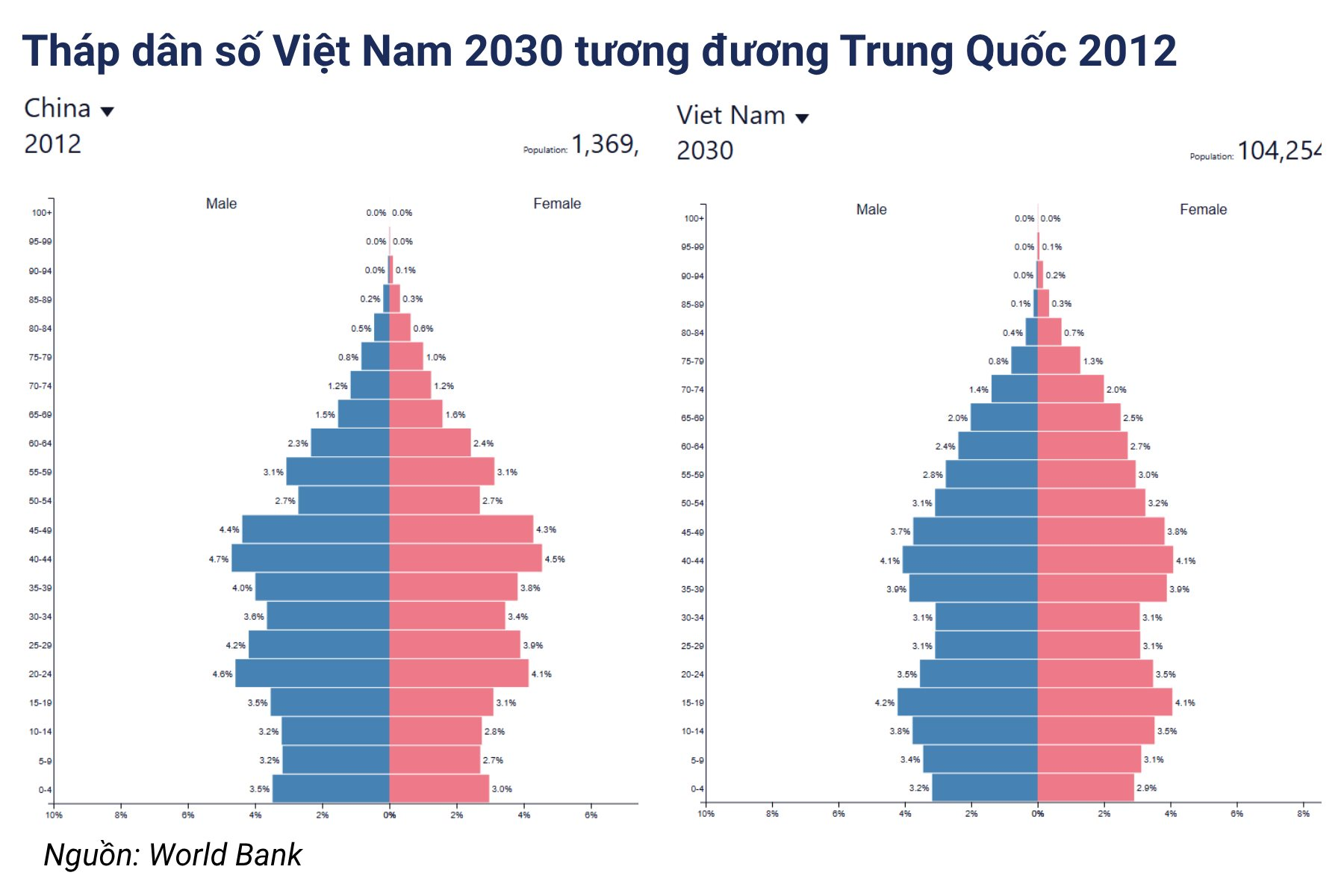 Theo Wigroup, nhìn vào tháp dân số, theo dữ liệu và ước tính của PopulationPyramid.net thì cơ cấu dân số Trung Quốc năm 2012 (điểm Uốn Lewis của Trung Quốc) sẽ tương đương cơ cấu dân số Việt Nam giai đoạn 2030 - 2035.