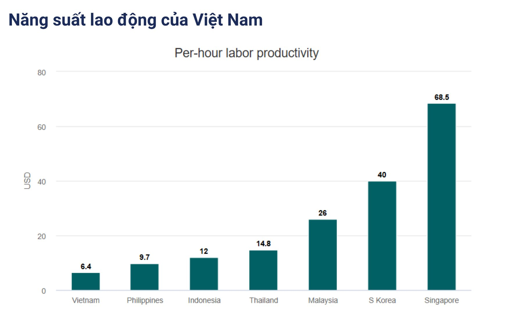Bên cạnh đó, lợi nhuận chính nằm ở khâu công nghệ, thiết kế – vốn do các doanh nghiệp nước ngoài nắm giữ. Lao động trong nước chủ yếu thực hiện thao tác lắp ráp, sản xuất với yêu cầu kỹ năng thấp, ít có cơ hội tham gia vào khâu giá trị cao hơn. Điều này dẫn đến năng suất lao động ở Việt Nam hiện vẫn thấp hơn đáng kể so với mức trung bình của nhóm nước thu nhập trung bình cao tại châu Á.