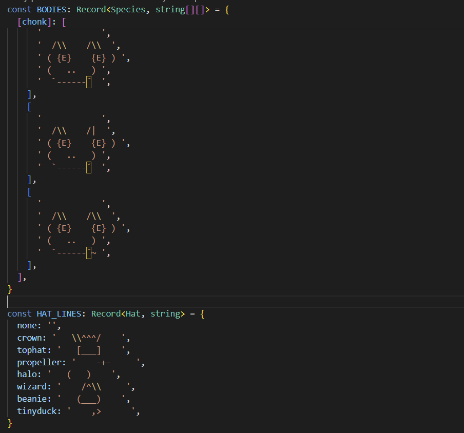 Điều thú vị: con thú cưng của mỗi người dùng không phải hoàn toàn ngẫu nhiên. Hệ thống tính toán dựa trên ID tài khoản, đảm bảo mỗi người luôn nhận về cùng một con thú cưng mỗi khi khởi động. Con thú còn có 5 chỉ số riêng: DEBUGGING (khả năng gỡ lỗi), PATIENCE (kiên nhẫn), CHAOS (hỗn loạn), WISDOM (trí tuệ), và SNARK (châm biếm) - một bộ chỉ số rõ ràng được thiết kế bởi người hiểu rõ tính cách của lập trình viên.