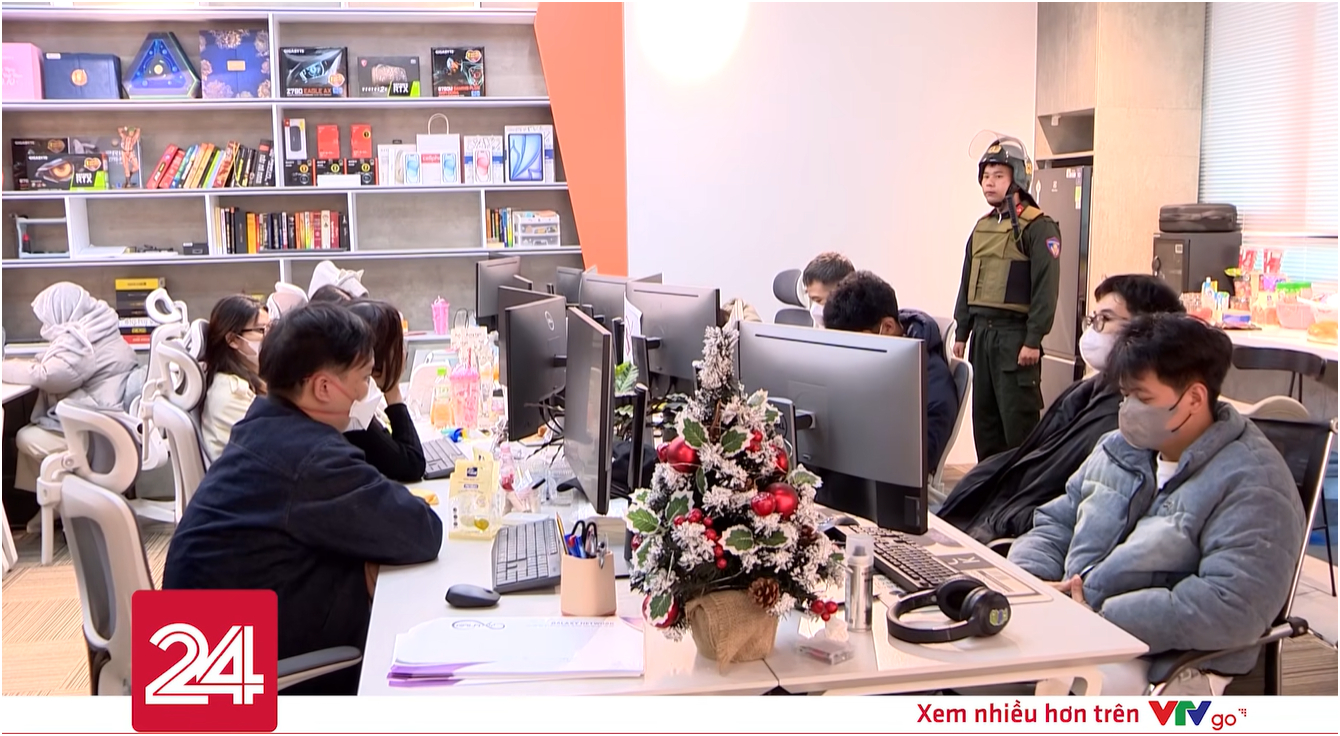 Thời điểm lực lượng chức năng có mặt, nhiều nhân viên đang ngồi làm việc trước các dãy máy tính được cho là không kịp phản ứng, tỏ ra bất ngờ trước sự xuất hiện đột ngột của lực lượng công an. Một số người tạm dừng thao tác trên máy, đứng dậy theo yêu cầu để phục vụ công tác kiểm tra và làm rõ các nội dung liên quan.