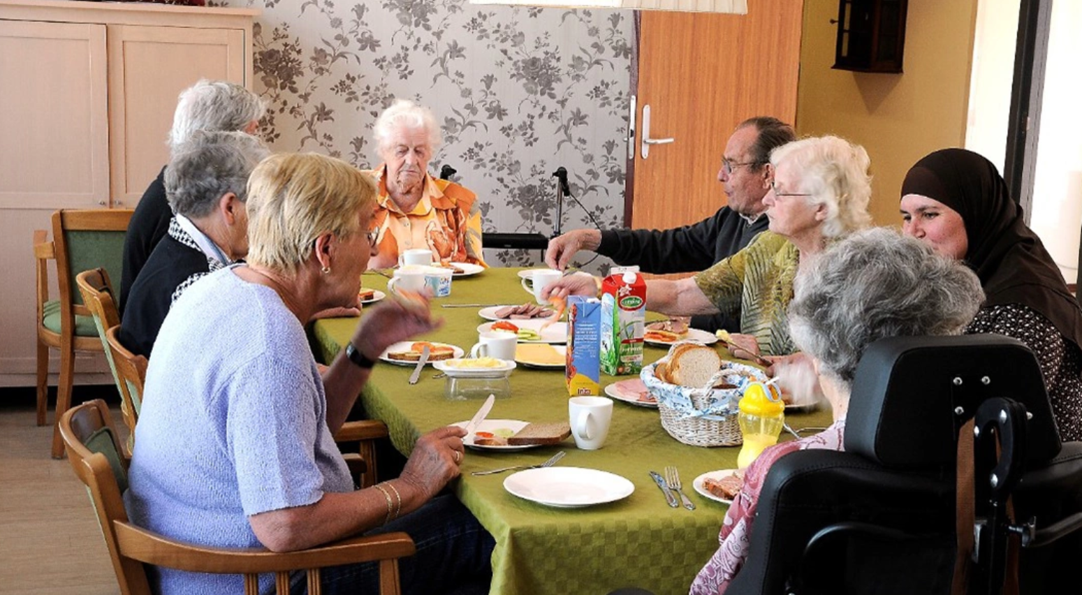 Những người già được nói chuyện, gặp gỡ và vui đùa cùng nhau mỗi ngày