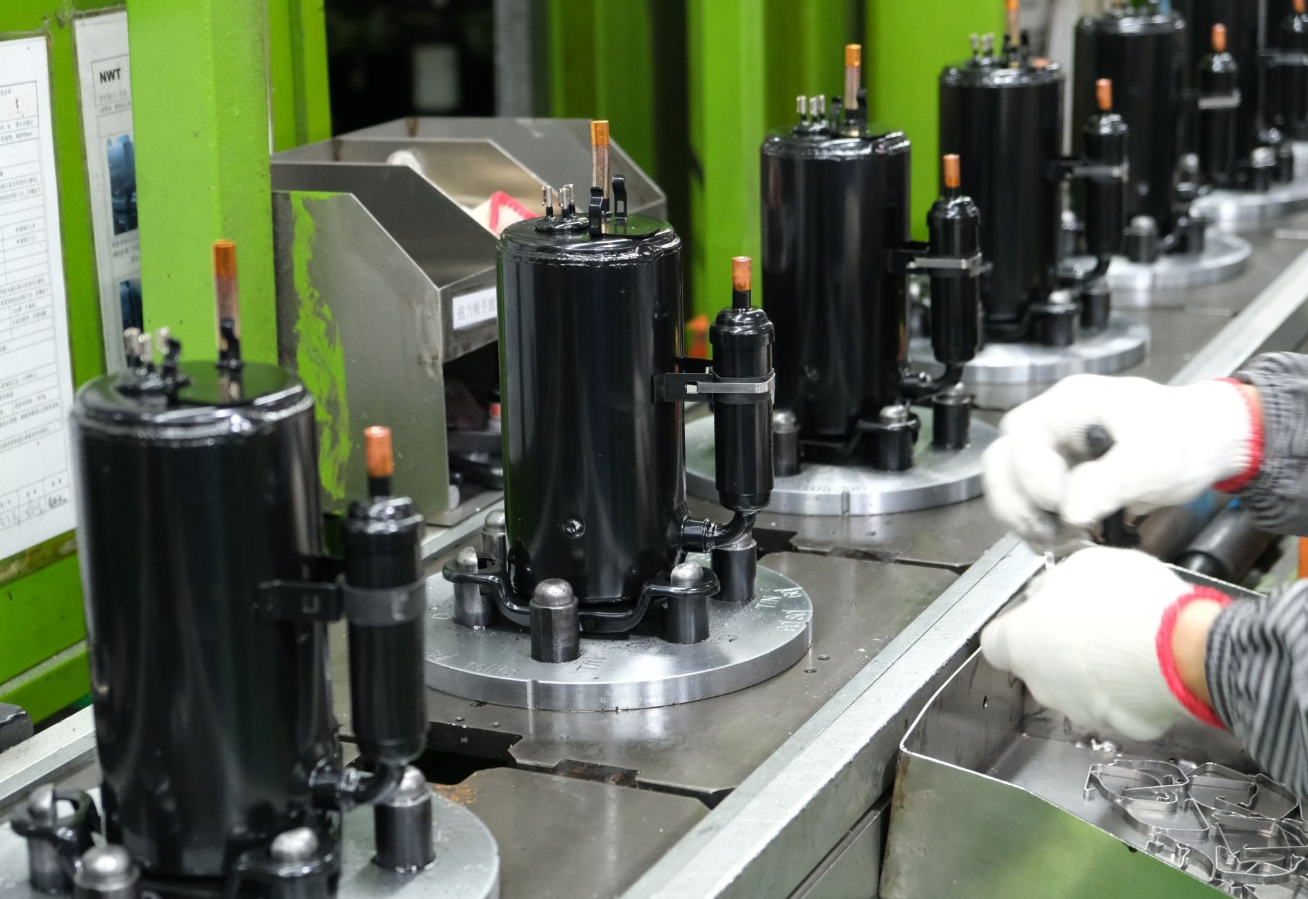 Đây là khu sản xuất máy nén – bộ phận được ví như “trái tim” của máy hút ẩm. Theo kỹ sư tại nhà máy, máy nén có thể chiếm tới 30–40% giá trị của một sản phẩm hoàn chỉnh, đồng thời quyết định trực tiếp hiệu suất hút ẩm, độ ồn và độ bền.