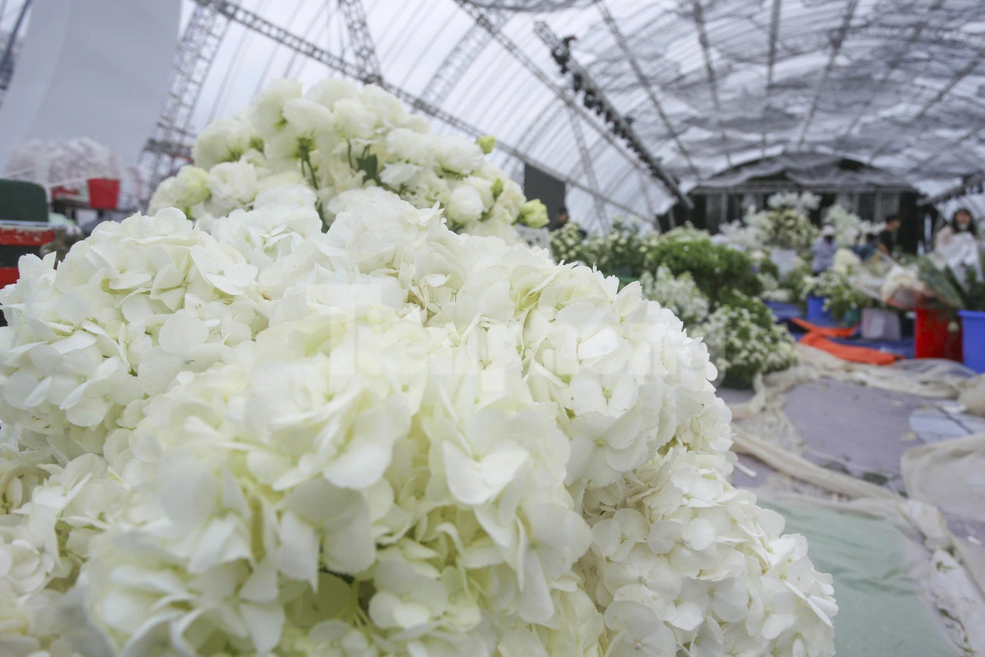 Toàn bộ công tác chuẩn bị dự kiến hoàn thành lúc 15h hôm nay, chuẩn bị đón khoảng 1.000 khách đến dự tiệc cưới.