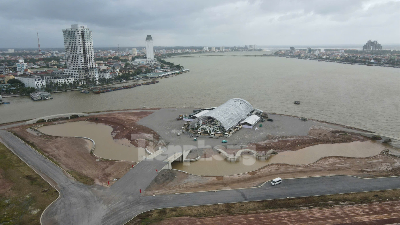 Không gian tiệc cưới rộng hàng nghìn m2 của Hoa hậu Đỗ Thị Hà và doanh nhân Viết Vương nổi bật bên bờ sông Nhật Lệ.