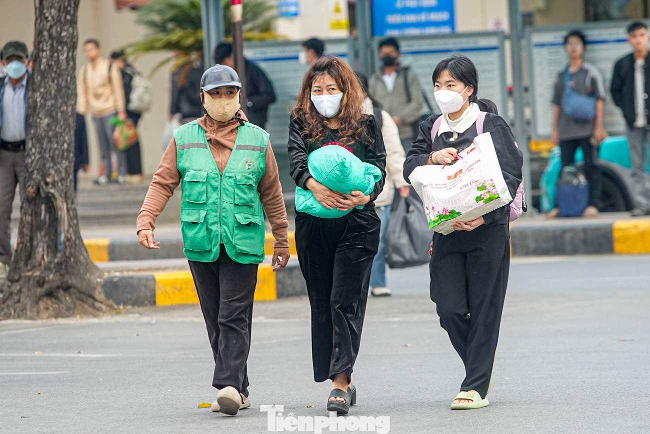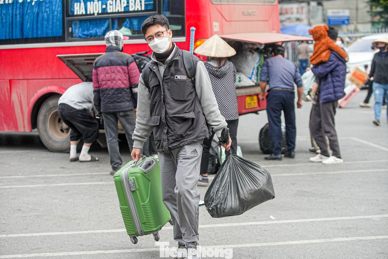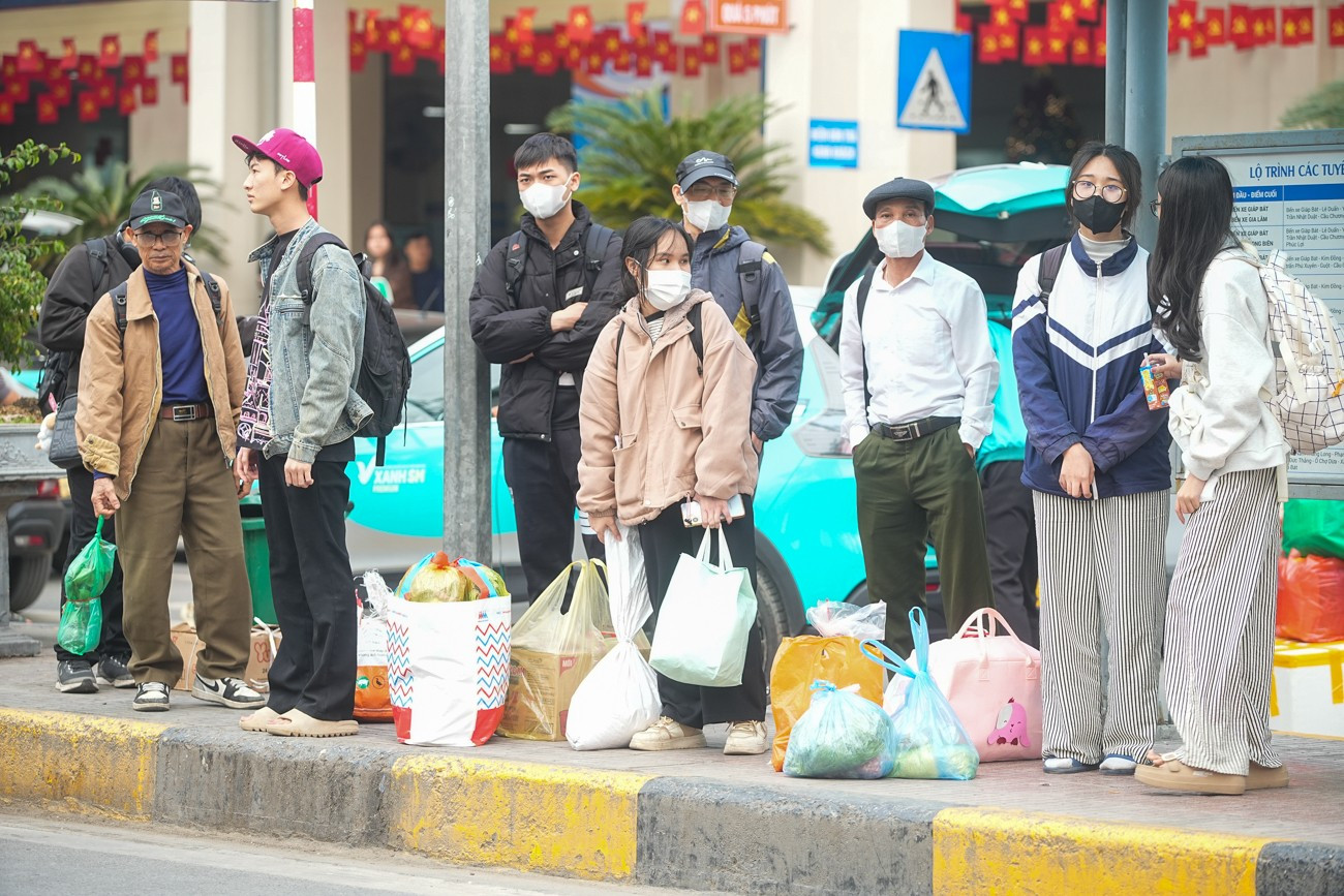 Ghi nhận của PV, các bến xe ở Hà Nội trở nên đông đúc ngay từ đầu giờ chiều. Tại bến xe Giáp Bát, không khí khá nhộn nhịp với những chuyến xe đưa người từ các địa phương trở lại thủ đô.