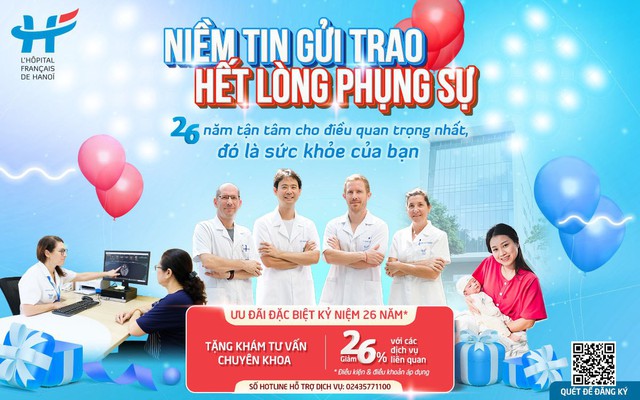 Tháng 9/2023, Bệnh viện Việt Pháp Hà Nội (HFH) kỷ niệm 26 năm thành lập, một cột mốc quan trọng trong hành trình cung cấp dịch vụ chăm sóc sức khoẻ xứng tầm cho khách hàng Việt Nam và người nước ngoài. Nhân dịp này, Bệnh viện Việt Pháp Hà Nội giới thiệu chương trình ưu đãi đặc biệt "Niềm tin gửi trao, hết lòng phụng sự".