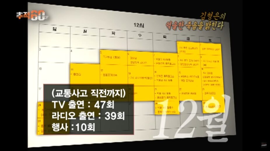 Cái chết của Kim Hyung Eun trở thành sự kiện gây xôn xao dư luận, khi công ty quản lý cố gắng che đậy sự thật xung quanh vụ tai nạn. Công ty này tuyên bố rằng chiếc xe không chạy quá tốc độ và họ không vội tham dự sự kiện tiếp theo. 1 chuyên gia về xe hơi sau đó đã bác bỏ những tuyên bố này. Các cuộc điều tra của truyền thông sau đó cũng tiết lộ rằng công ty này đang cố gắng che đậy sự thật.