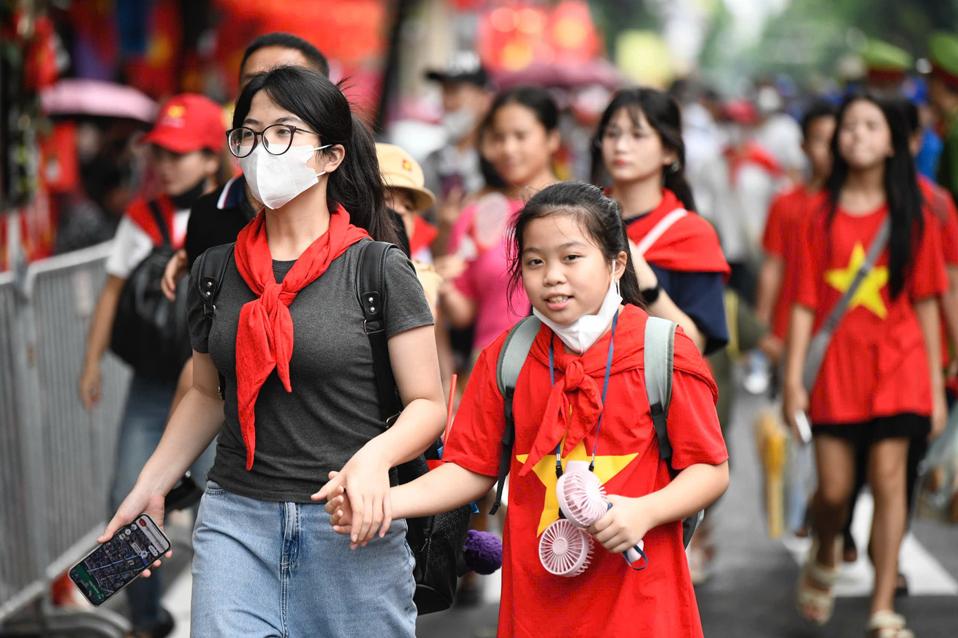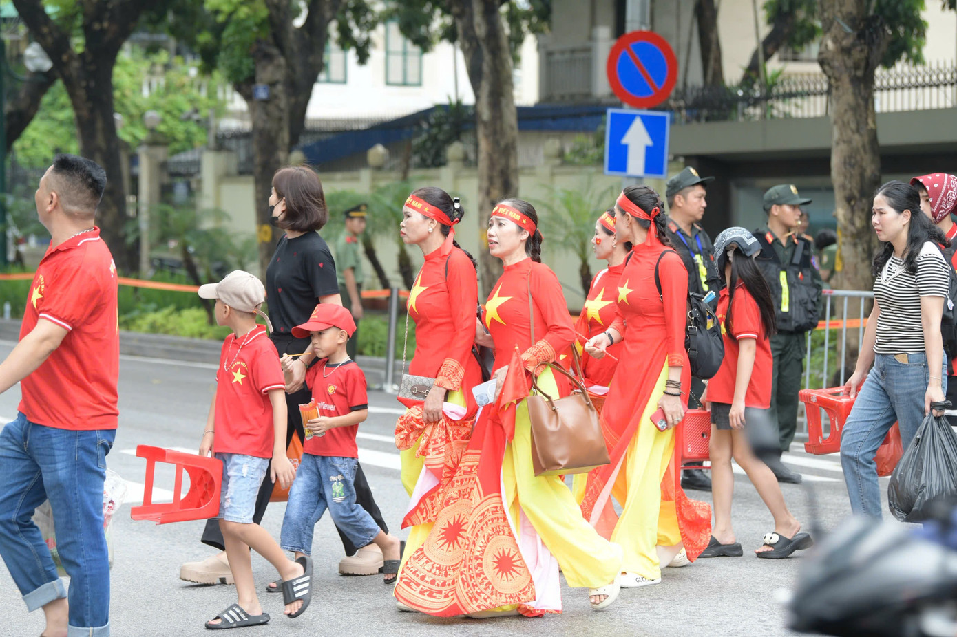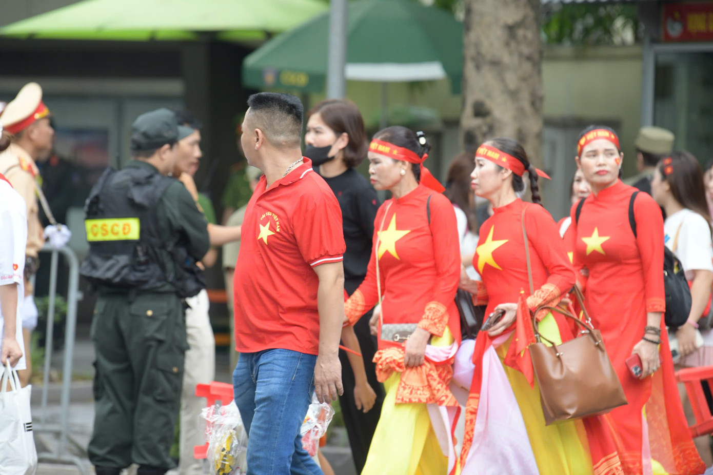 Người dân phấn khởi mặc áo cờ đỏ sao vàng, mang theo cờ Tổ quốc, tập trung tại các vị trí "đẹp" để chờ xem sơ duyệt diễu binh, diễu hành.