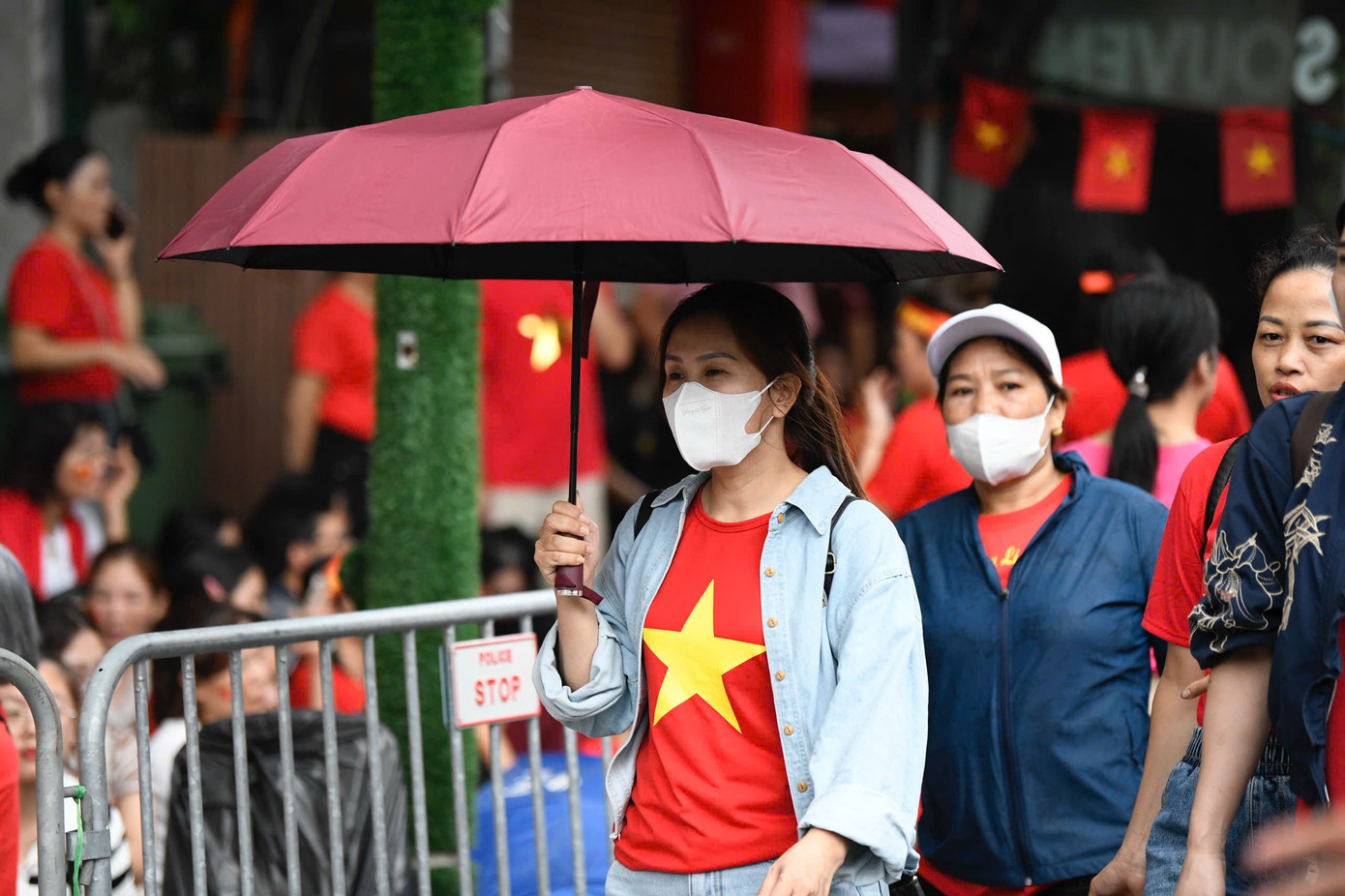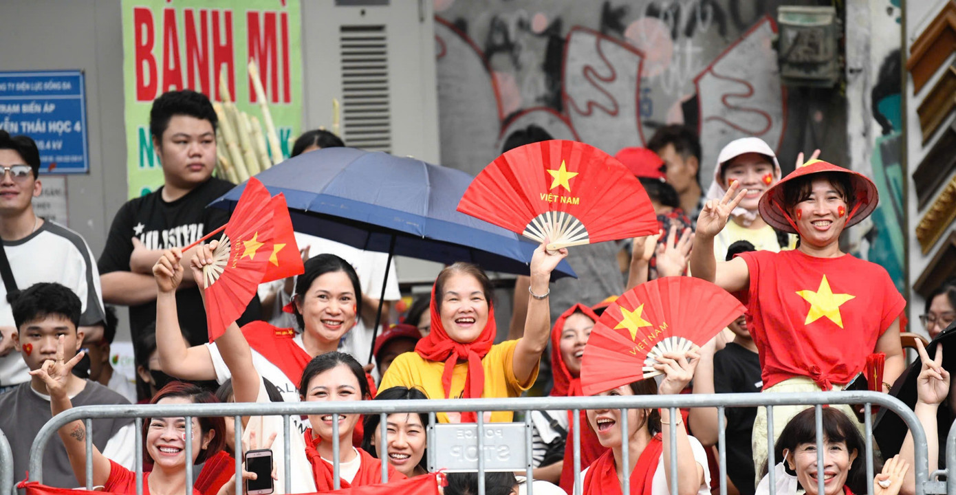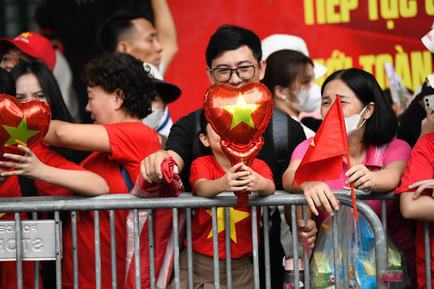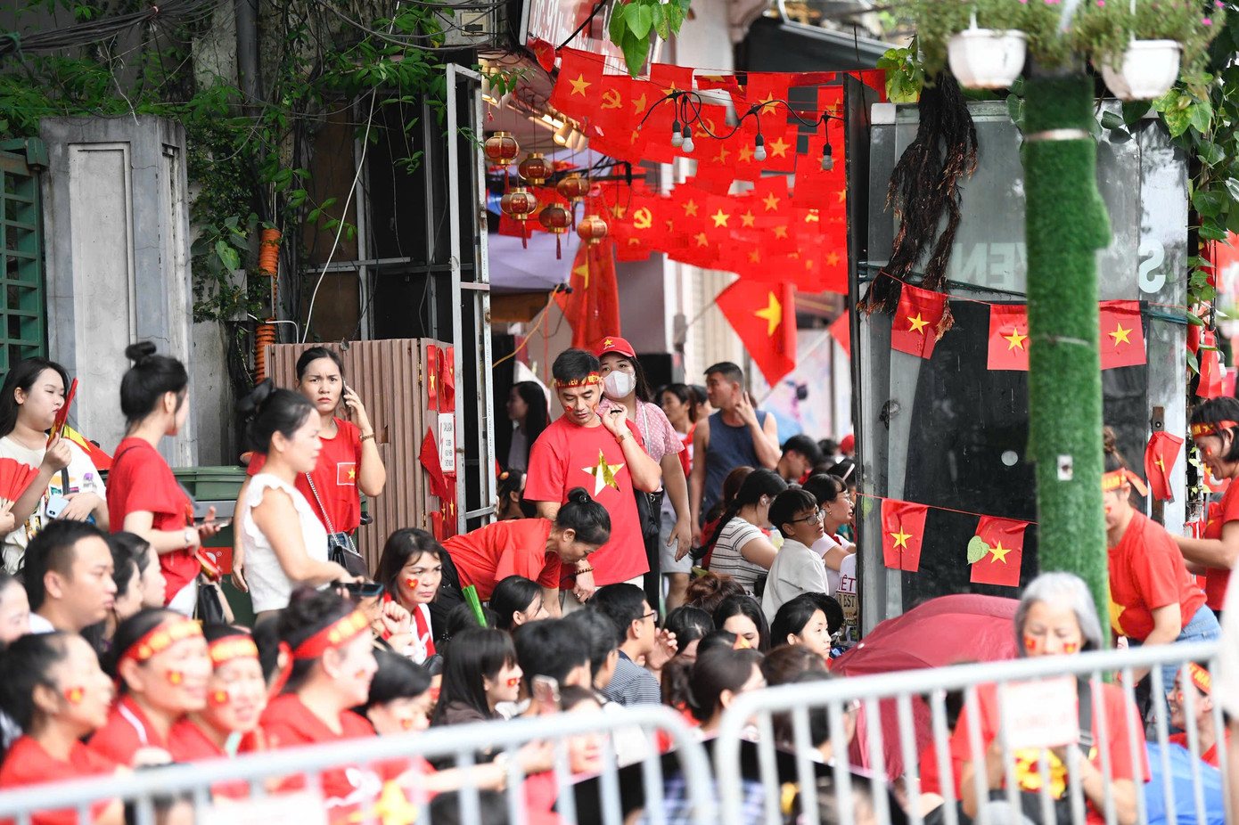 Người dân phấn khởi mặc áo cờ đỏ sao vàng, mang theo cờ Tổ quốc, tập trung tại các vị trí "đẹp" để chờ xem sơ duyệt diễu binh, diễu hành.