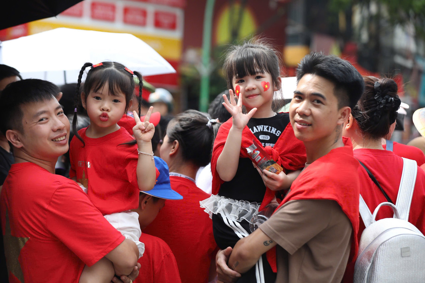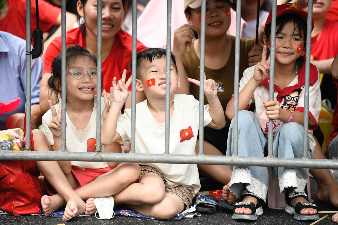 "Khối" thiếu nhi phấn khích khi được theo chân bố mẹ đi xem diễu binh, diễu hành.