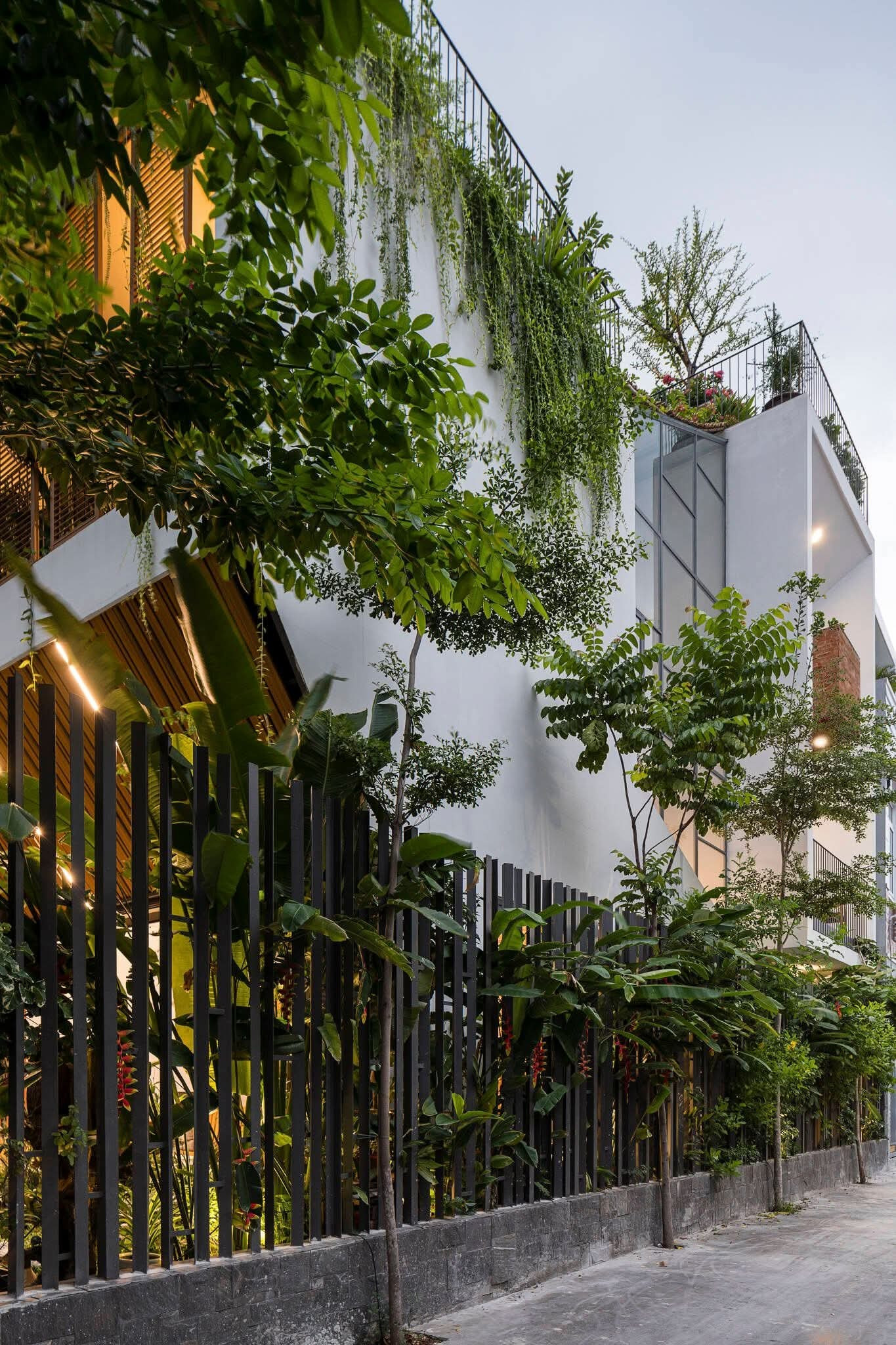 Không chỉ bên ngoài mà bên trong cũng được phủ xanh bằng cây cối. Các bồn cây trong nhà được sắp đặt bất quy tắc tạo ra những điểm nhìn thú vị.