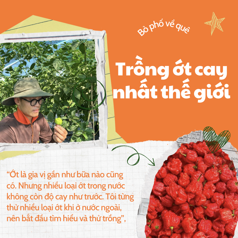 Lý do đến từ một quan sát rất đơn giản. “Ớt là gia vị gần như bữa nào cũng có. Nhưng nhiều loại ớt trong nước không còn độ cay như trước. Tôi từng thử nhiều loại ớt khi ở nước ngoài, nên bắt đầu tìm hiểu và thử trồng”, anh chia sẻ.