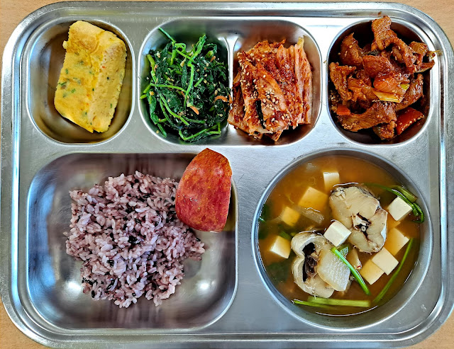 Ví dụ một khay cơm trưa tại trường học Hàn Quốc. Ảnh: koreanlunches