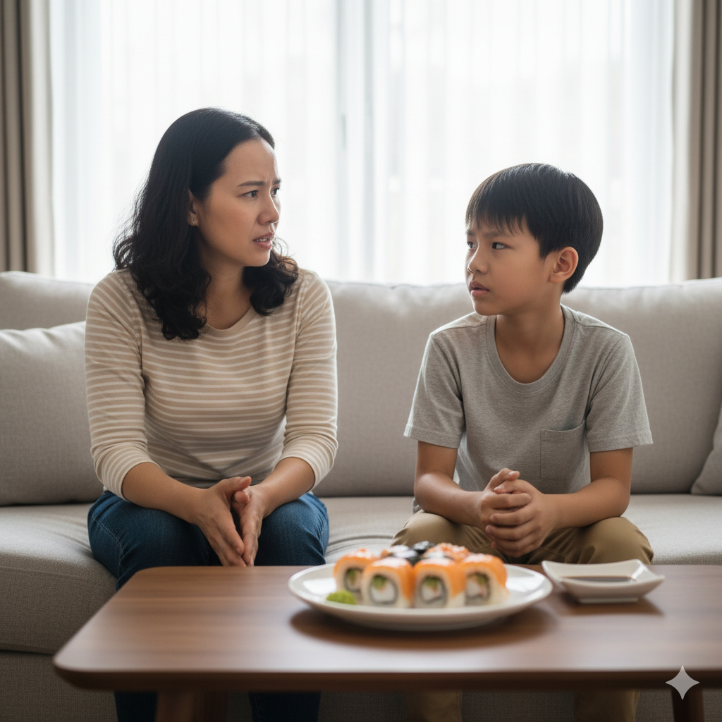 Bữa ăn sushi “bóc trần” sai lầm dạy con của một bà mẹ Hà Nội: Đừng vì chút lợi nhỏ mà gây hại lớn đến tương lai con!