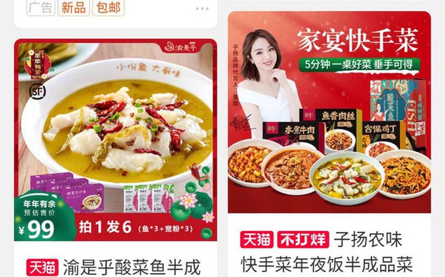 Khi tìm kiếm từ khóa "Bữa ăn tối Giao thừa", kết quả cho thấy rất nhiều sản phẩm đa dạng như gói các món ăn Tứ Xuyên, Quảng Đông, Đông Bắc,... Các món ăn được chế biến theo đặc trưng của từng vùng miền, với mục đích để những người xa nhà có thể thưởng thức hương vị quê hương đúng chuẩn nhất có thể.