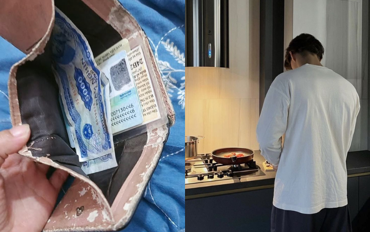 Bức ảnh chiếc ví sờn rách cùng 2 tờ 5000 đồng do người chồng đăng tải