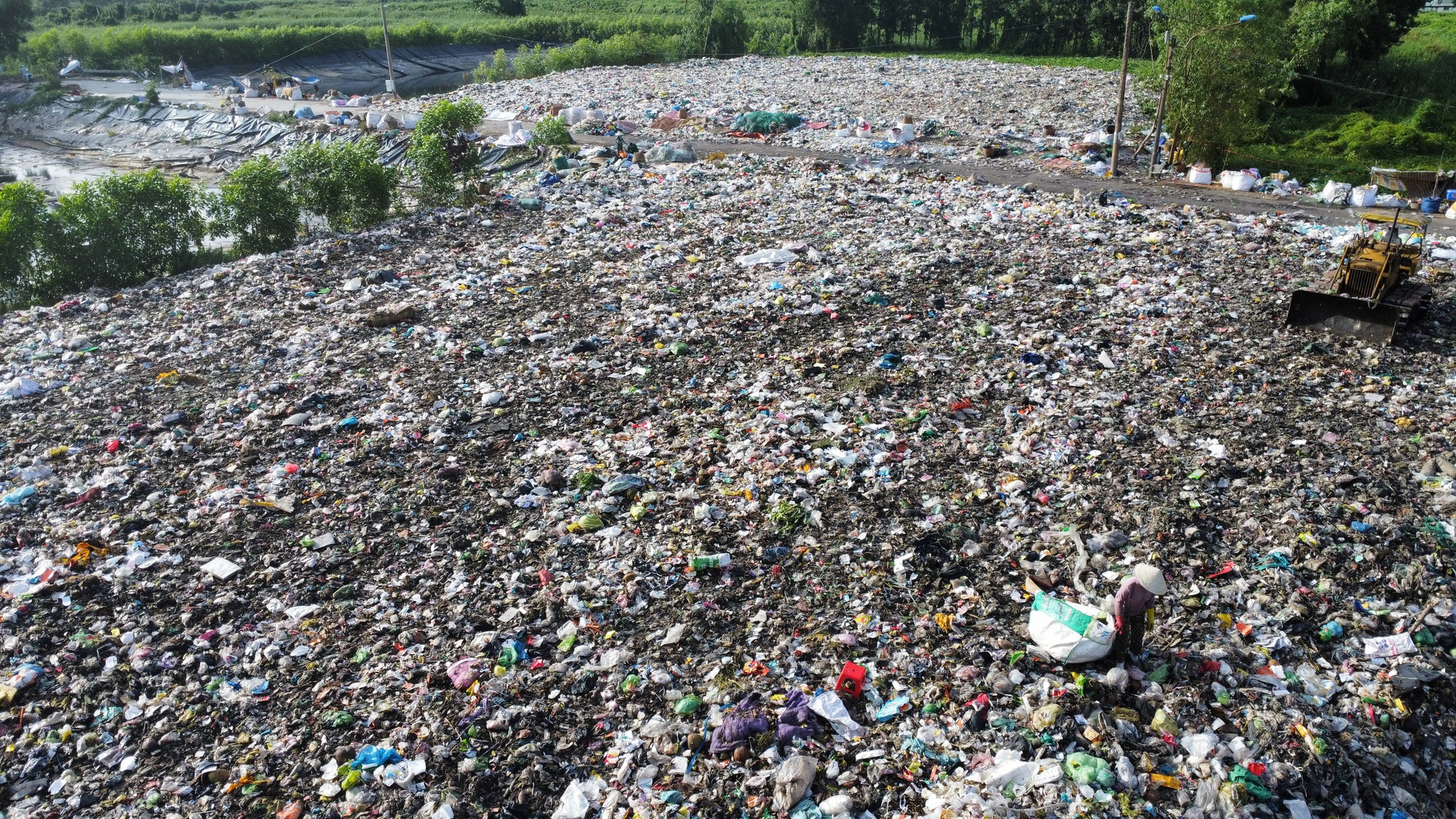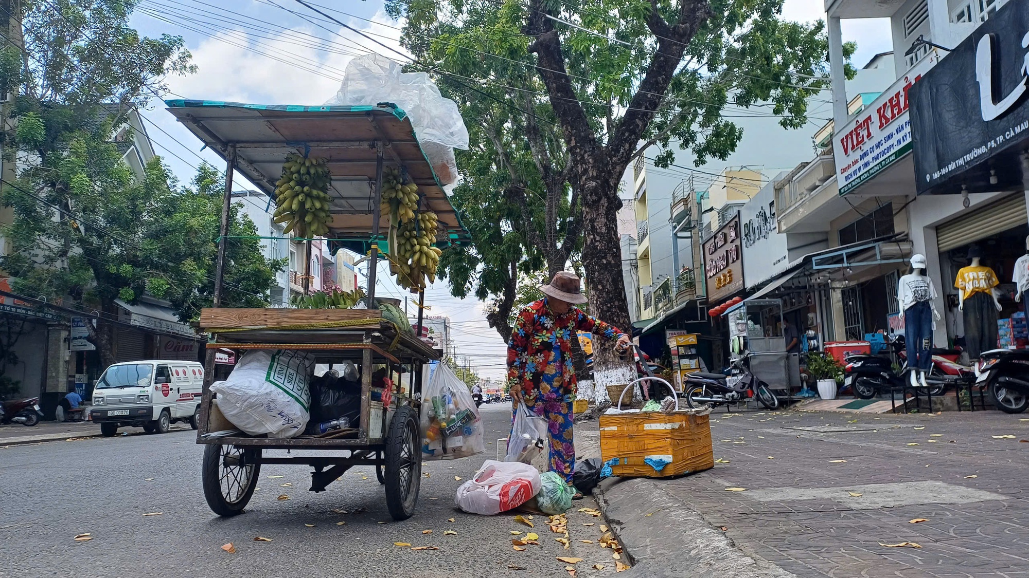 Một người dân có hoàn cảnh khó khăn nhặt chai nhựa bán kiếm thêm thu nhập