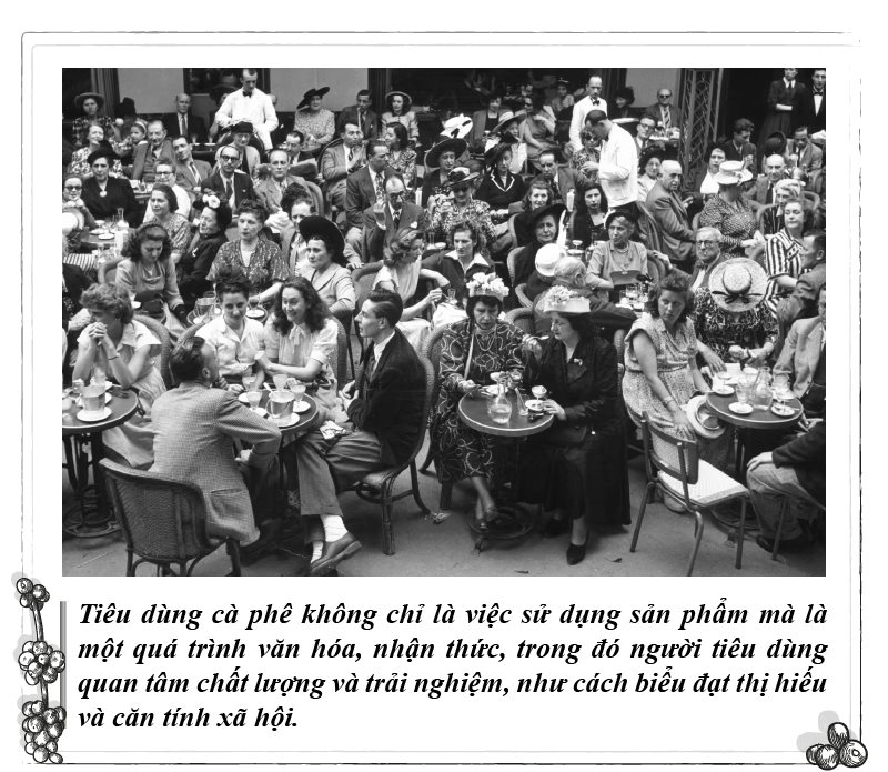 Từ đó, nhiều xu hướng tiêu dùng gắn với thưỡng lãm cà phê được hình thành, phản ánh hệ giá trị và thị hiếu riêng. Espresso Mi Cultura nhấn mạnh cà phê như phương tiện tự biểu đạt văn hóa cá nhân. Gourmet coffee hướng đến người sành thưởng thức, đề cao hiểu biết về giống, vùng trồng và kỹ thuật pha chế. Capsule coffee mở hướng cho khách hàng về cuộc sống sung túc, thượng lưu. Song song đó, các thương hiệu cà phê cũng vận hành như biểu tượng phong cách, hay tuyên ngôn lối sống. General Foods International Coffee (Mỹ) mô tả cà phê là sản phẩm sang trọng dành cho người giàu có và đẳng cấp. Gloria Jean’s Coffees (Úc) thiết lập hệ sinh thái trải nghiệm văn hóa cà phê hoàn hảo từ hạt cà phê đến từng chiếc tách theo triết lý “Good Cup” - làm cuộc sống ngày càng tốt hơn.