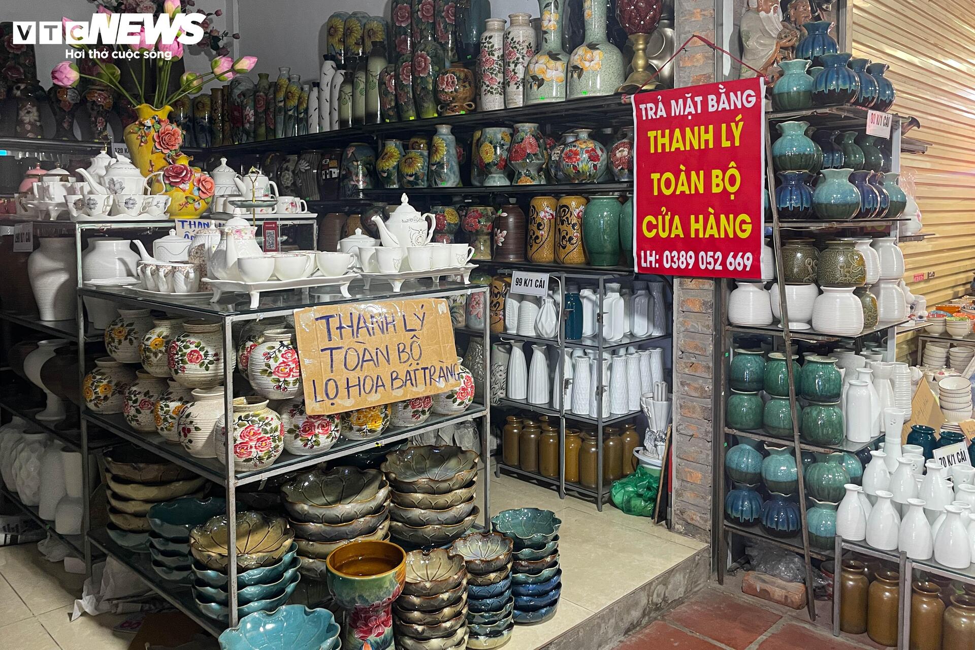 Kinh doanh ngày càng ế ẩm, các cửa hàng tại làng gốm Bát Tràng (Hà Nội) đang cố gắng bám trụ, nhưng nhiều quầy đã đóng cửa, phủ bạt, bán gián đoạn.