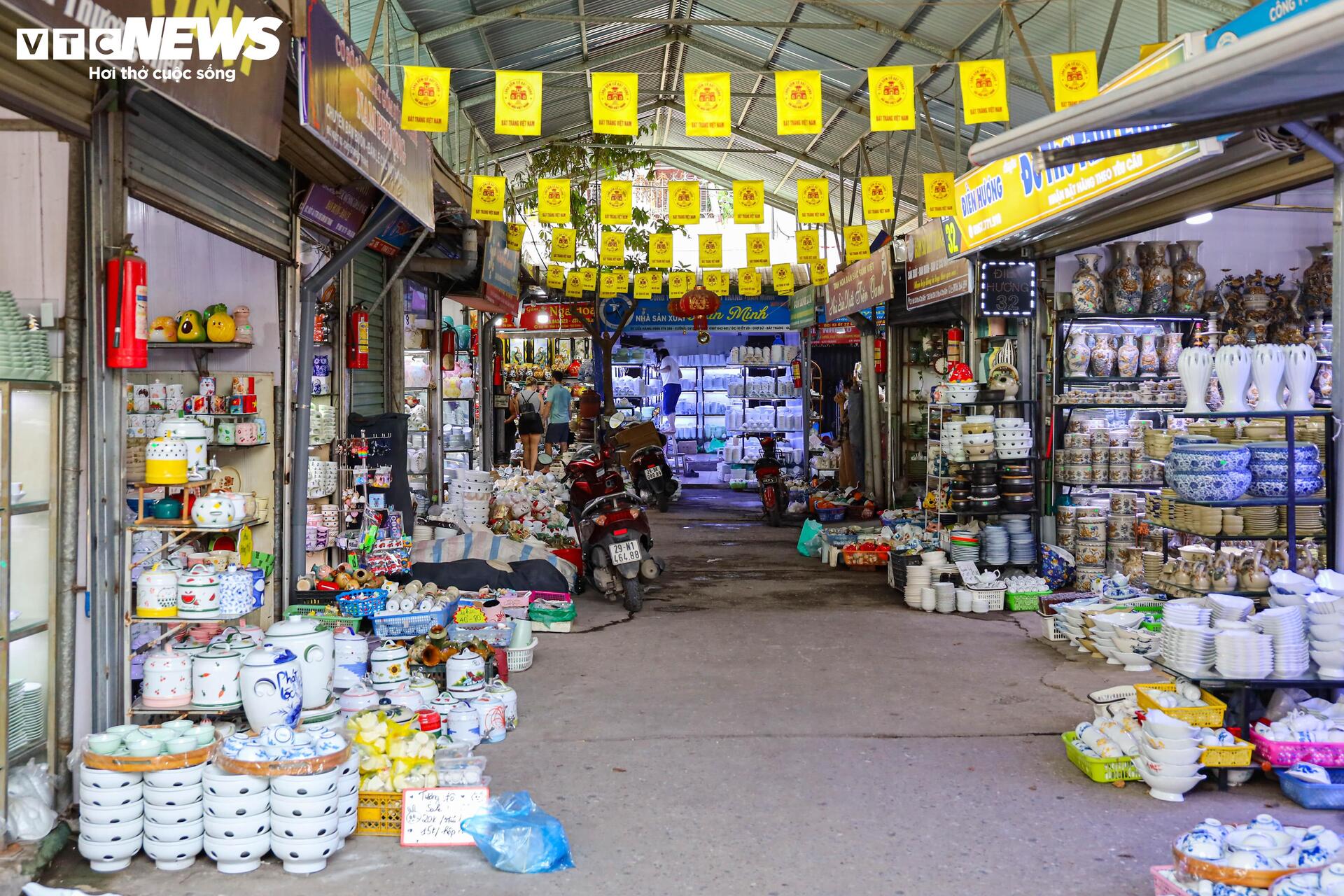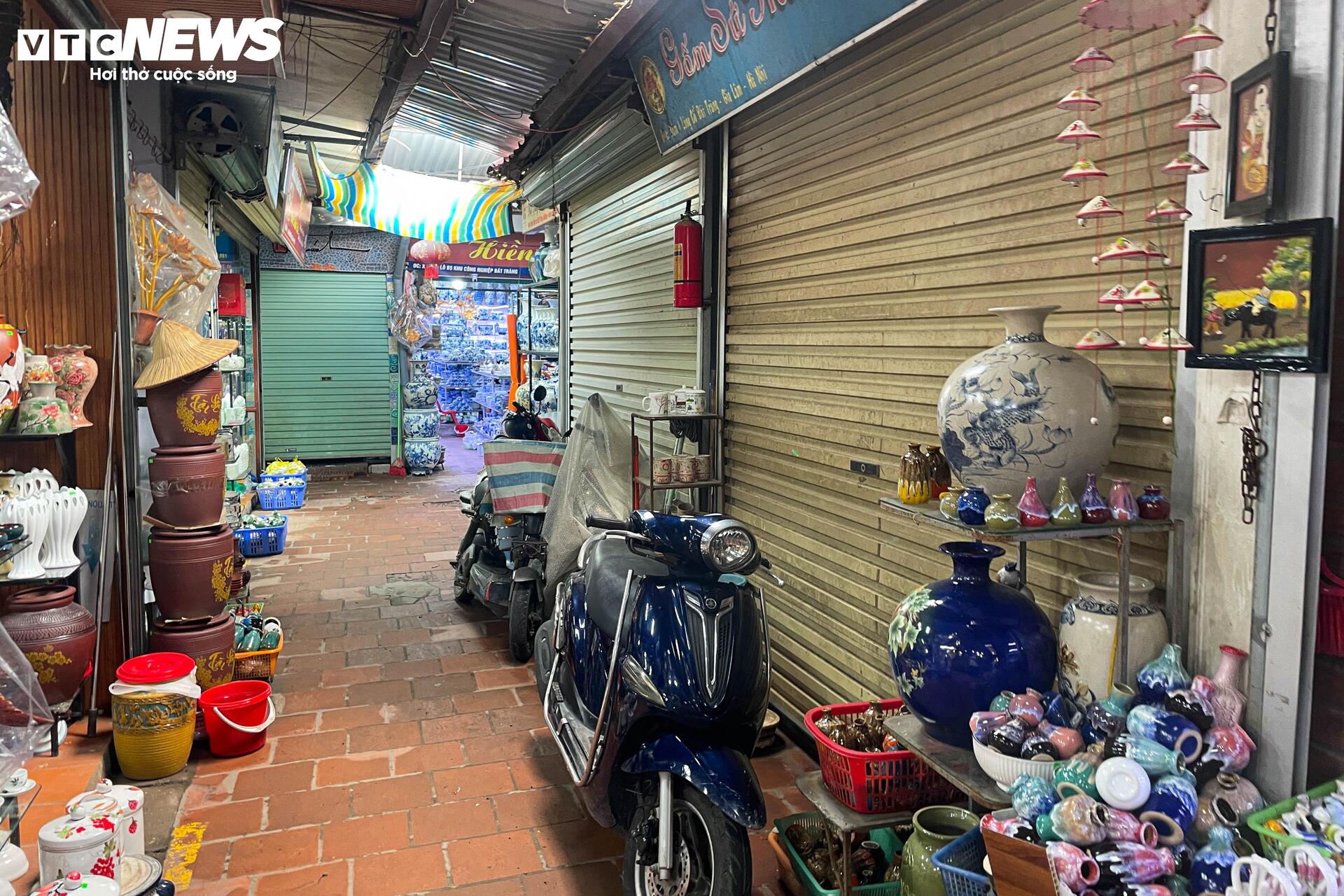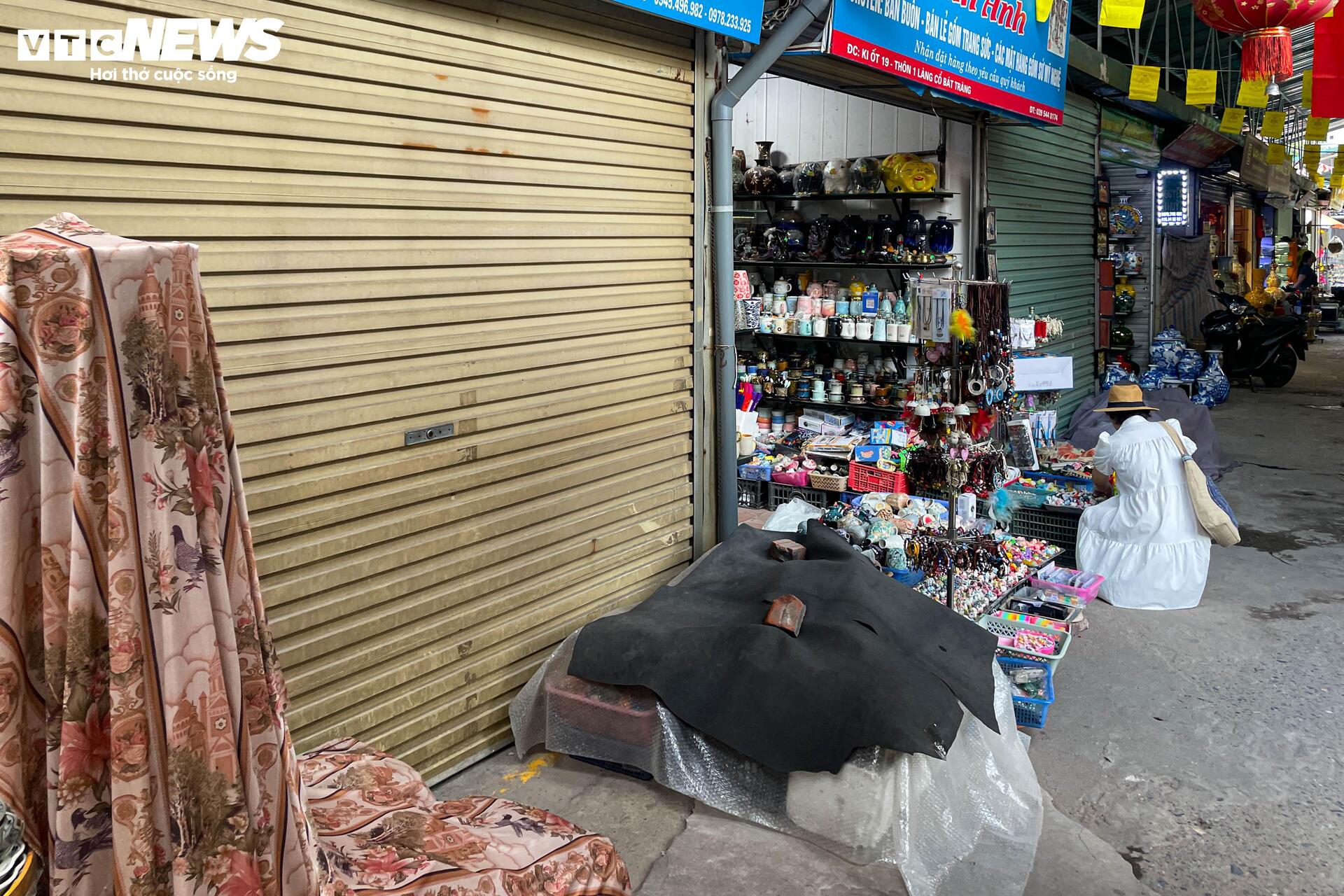 Cảnh ế ẩm, vắng khách, đóng cửa hàng giữa ban ngày ở chợ gốm Bát Tràng.