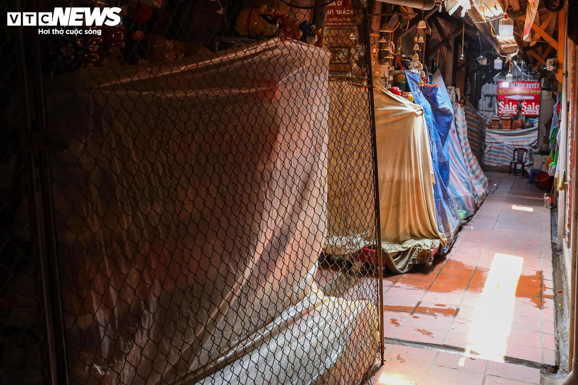 Cả tuần vắng khách mua, nhiều quầy hàng ở làng gốm Bát Tràng khóa cửa, phủ bạt