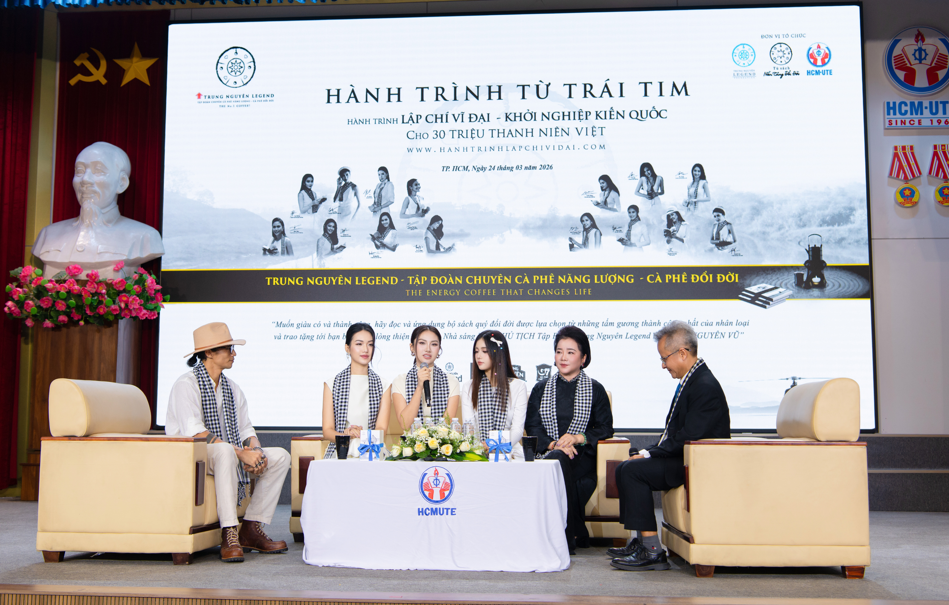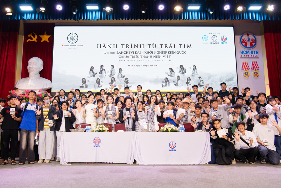 Ngày 24/3/2026, Tập đoàn Trung Nguyên Legend tiếp tục triển khai “Hành trình Từ Trái Tim - Hành trình Lập chí Vĩ đại - Khởi nghiệp Kiến quốc cho 30 triệu thanh niên Việt” khởi đầu tại TP.HCM tại Trường Đại học Công nghệ Kỹ thuật TP.HCM và Trường Đại học Công Thương TP.HCM.