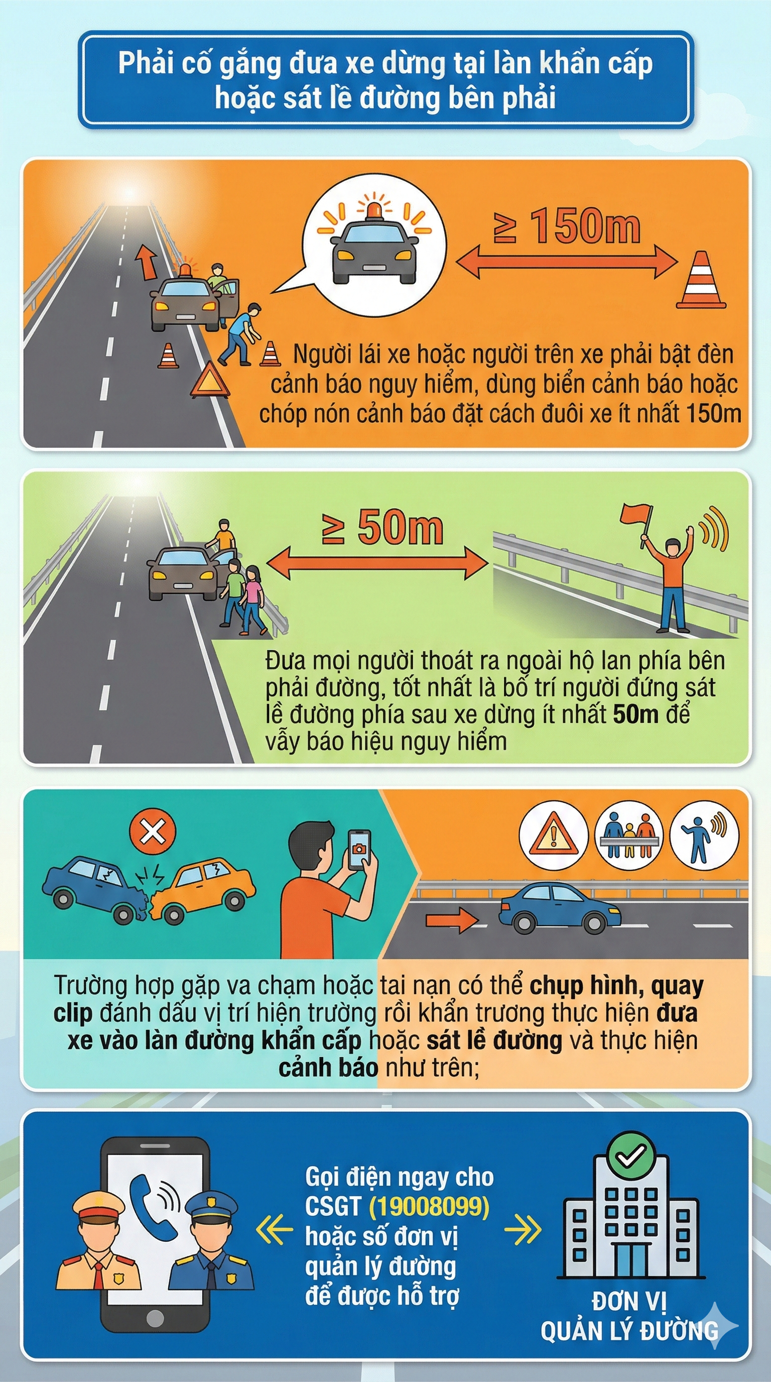 Các trường hợp nào được đỗ xe trên cao tốc, đặt cảnh báo sao cho đúng? Cục CSGT giải đáp