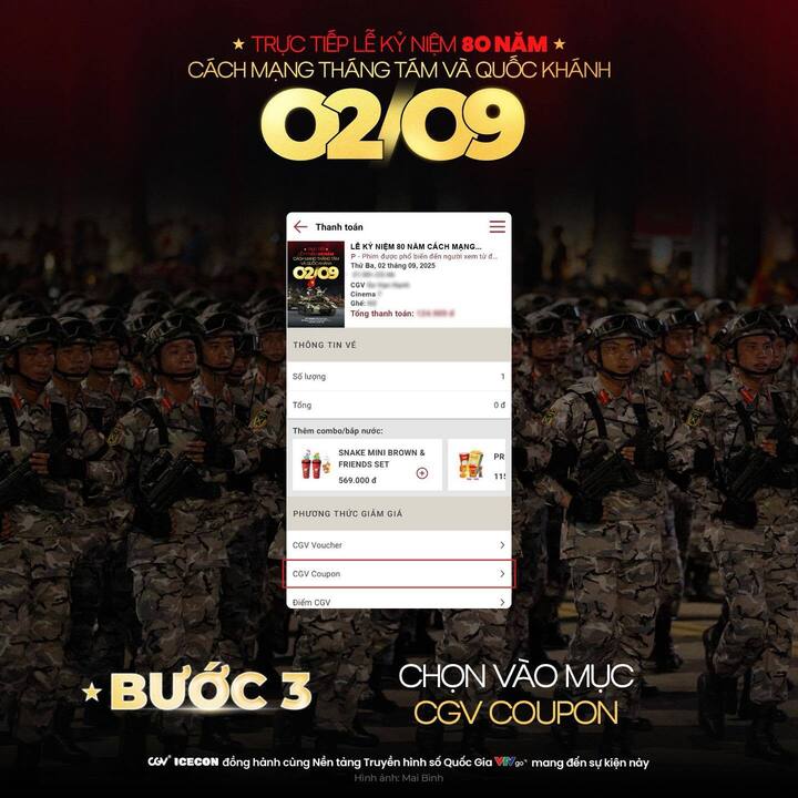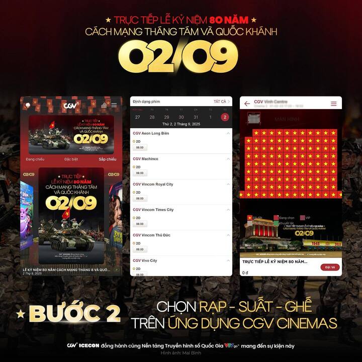 Khán giả cả nước có thể đăng ký xem trực tiếp Lễ diễu binh, diễu hành A80 mừng Quốc khánh 2/9 miễn phí tại hệ thống rạp chiếu phim của CGV.