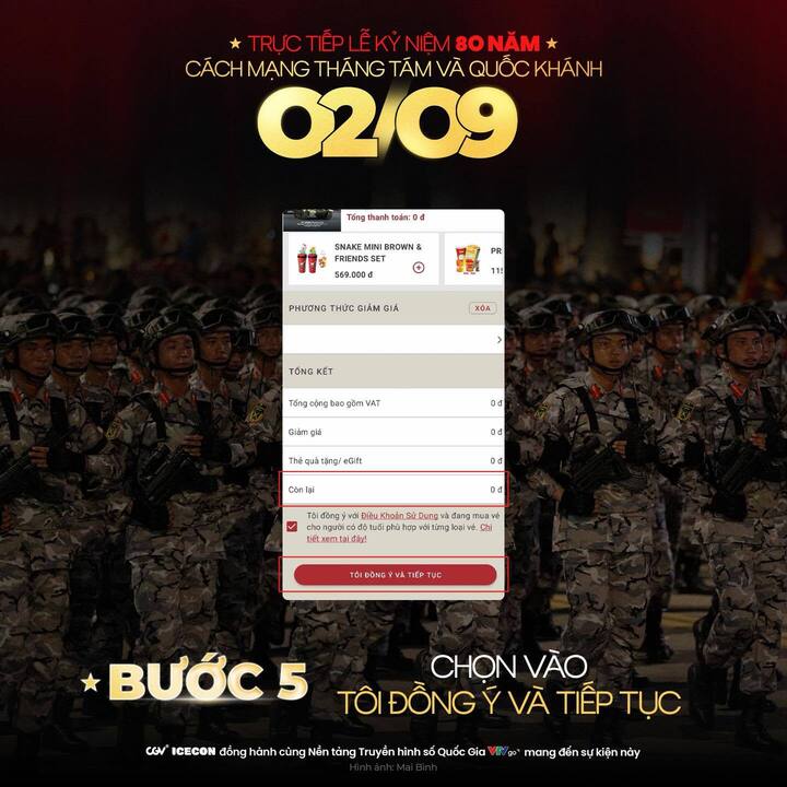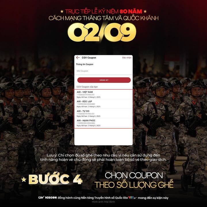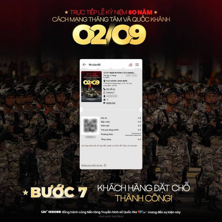 Cách đăng ký xem Lễ diễu binh, diễu hành A80 miễn phí tại rạp chiếu phim