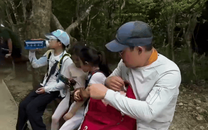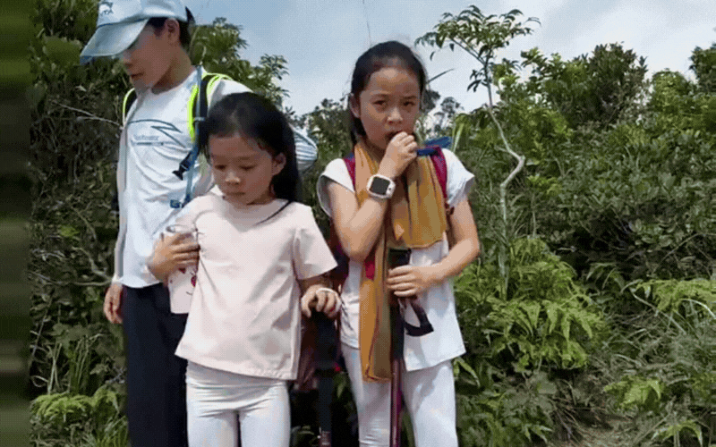 Nhìn vào những hình ảnh của gia đình họ, bạn sẽ thấy: Các con tự đeo balo, tự cầm bình nước, tự đặt từng bước chân lên dốc. Không có chuyện cha cõng hay mẹ bế dù chân đã mỏi, dù mặt đã đỏ bừng vì nắng.