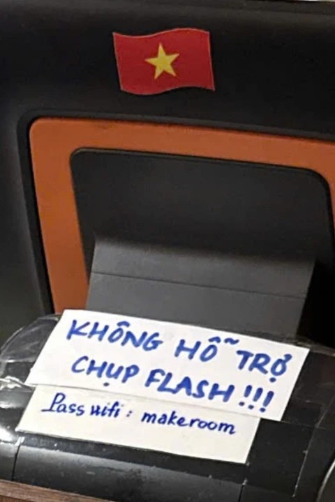 Quy định "không hỗ trợ chụp flash" được quán cà phê Make Room dán ở khu vực thu ngân.