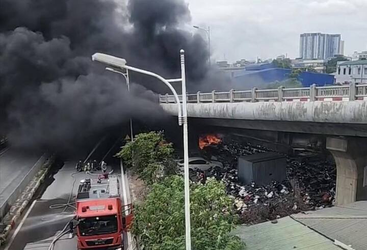 Cấm ô tô trên 18 tấn chạy hướng cầu Vĩnh Tuy đi Nguyễn Khoái sau vụ cháy bãi xe