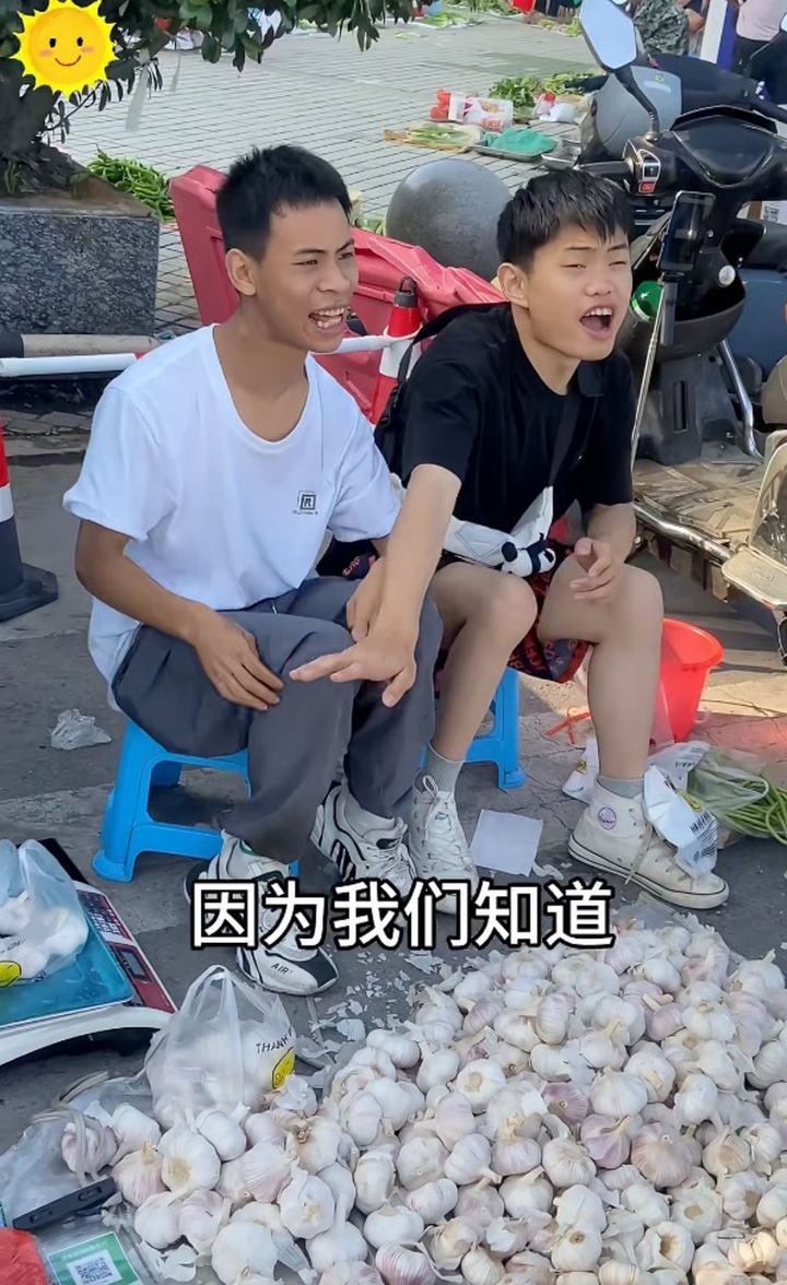 Họ bán khoảng 35kg tỏi và gừng ở chợ mỗi ngày. (Ảnh: RedNote)