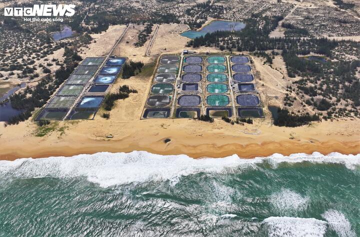 Những đầm nuôi tôm công nghệ cao của người dân xã Cát Tiến nằm sát bờ biển nhiều màu sắc, hòa chung với màu xanh của biển, màu vàng của cát và những con sóng bạc đầu, tạo nên một bức tranh thiên nhiên hùng vỹ.