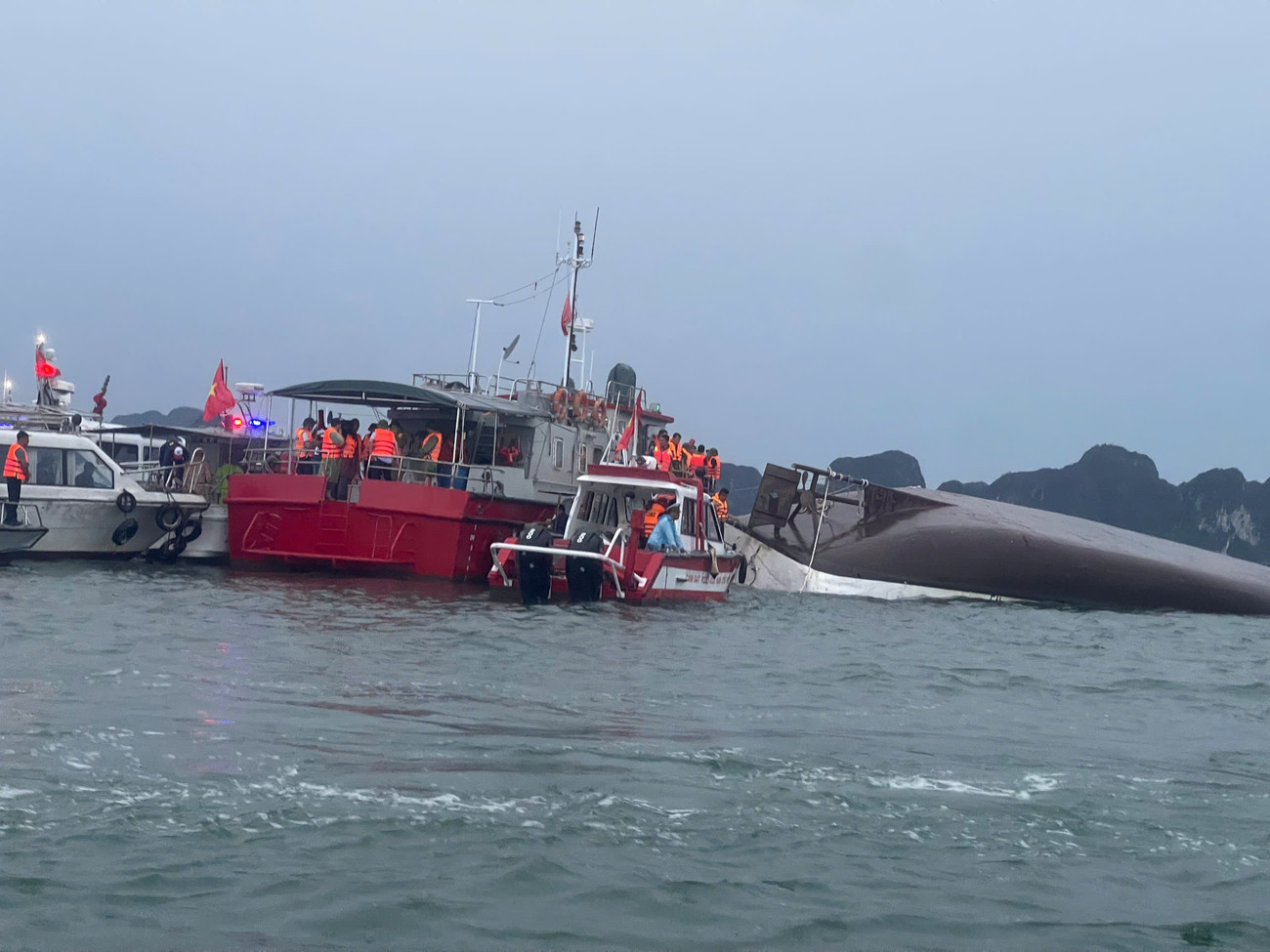 Cận cảnh cứu hộ tàu lật trên vịnh Hạ Long, đã cứu được 12 người, vớt 3 thi thể
